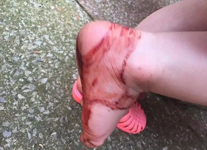 Всего лишь полчаса понадобилось родителям одной девочки, чтобы удостовериться в том, что купленные ребенку китайские босоножки оказались далеко не самым лучшим выбором. Только взгляните на то, что эти «кандалы» сделали с детской ножкой за это время.
