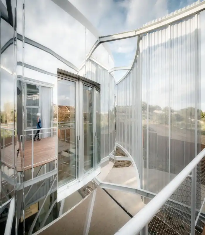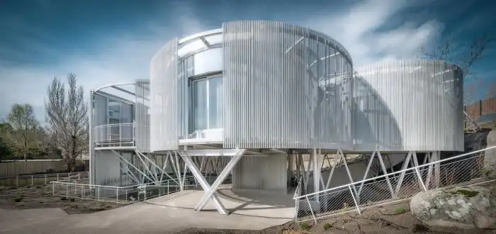 Одна состоятельная испанская семья решилась обзавестись постоянным жильем, которое бы в полной мере отвечало их внутреннему миру и отражало их образ жизни с постоянными путешествиями по всему миру. Для того чтобы воплотить все задуманное в жизнь пара обратилась в архитектурное бюро Z4Z4 AAA, благодаря которому и появилась резиденция Tobogan в Мадриде. Дом площадью 512 квадратных метров выполнен из двух блоков, расположенных на южном склоне и купающихся в лучах солнца. Один из уровней приподнят над землей, в результате чего складывается впечатление, что он парит в воздухе. В наполненном естественным светом доме находится сад, в результате чего даже здесь можно почувствовать единение с природой.