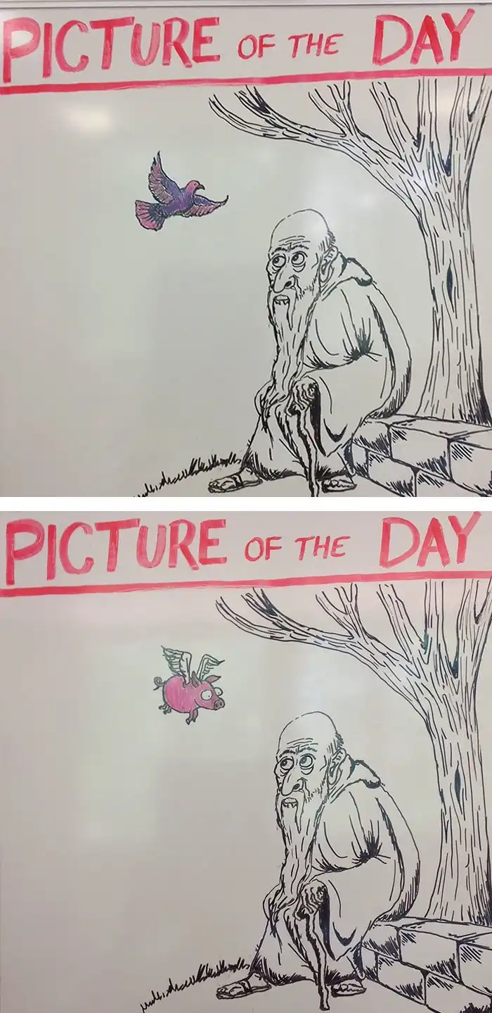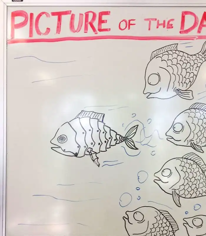 Таким образом учитель пытается скрасить серые будни своих учеников, вызвать обсуждение или даже просто подарить улыбку