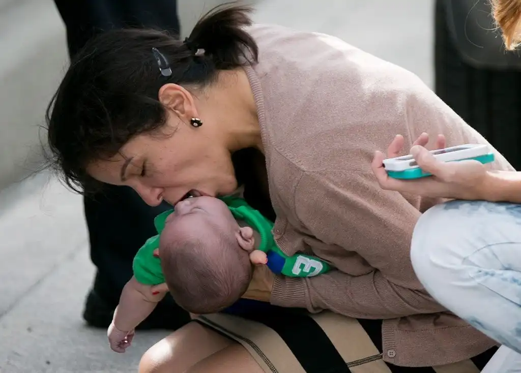 2. Женщина делает искусственное дыхание своему пятимесячному племяннику