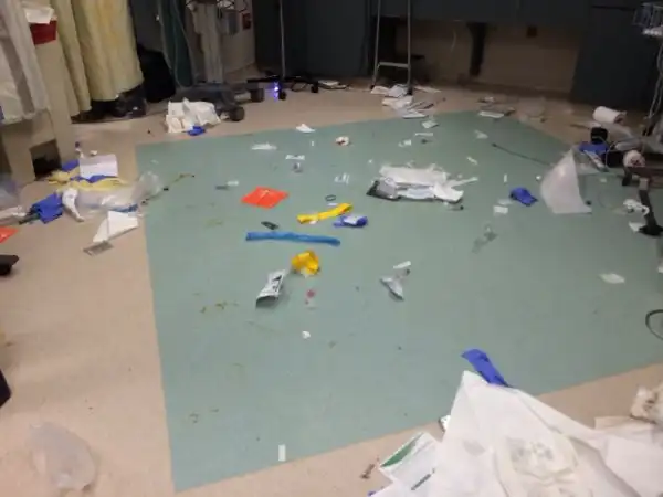 13. Пол отделения неотложной помощи после спасения пациента