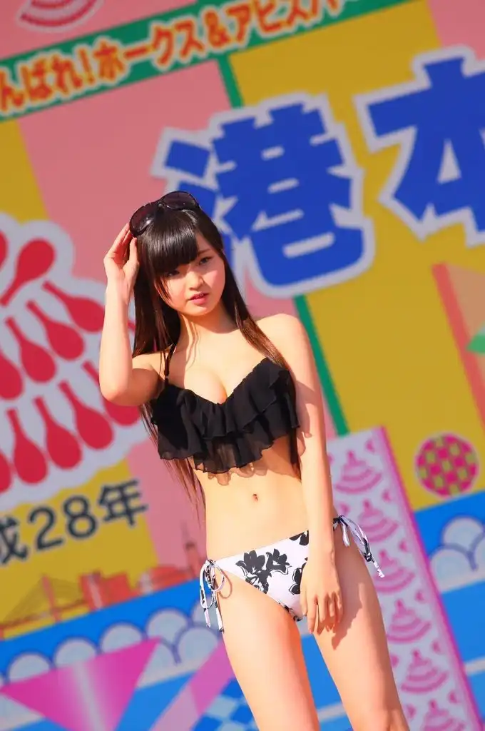 На первом снимке — известная в Японии бикини-модель с лицом школьницы Марина Нагасава.
