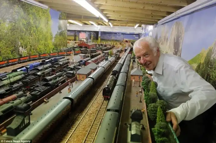 Любитель игрушечных поездов и миниатюрных железных дорог Рой Джеймс из Великобритании 20 лет назад начал собирать свою собственную железную дорогу, и теперь его коллекция оценивается в 250 000 фунтов стерлингов. Железная дорога занимает площадь в 300 квадратных метров и уже не помещается в отведенном для нее сарае во дворе дома Роя. В коллекции 72-летнего пенсионера имеется 100 поездов и порядка 400 вагонов, а сама железная дорога проходит через 16 станций и один большой город.