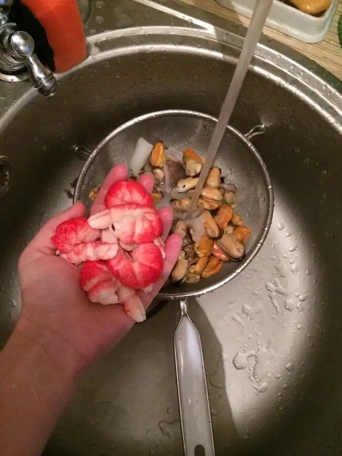 Креветки оказались вовсе не креветками, а формованными крабовыми палочками. По словам автора фото, в замороженном виде крабовые палочки выглядели совсем как креветки, тем более они плохо просматривались через упаковку.