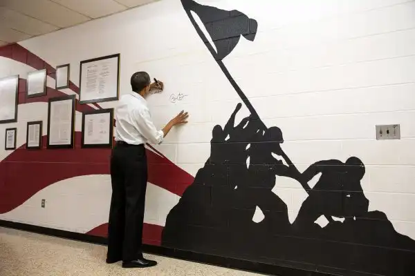 Именно столько снимков сделал официальный фотограф Белого Дома мистер Пит Соуза за 8 лет работы. Ну или за два срока президентства Обамы. Он постоянно ходит за ним и делает снимки, сотни и тысячи снимков. Потом отбирает из них лучшие. Кстати, Соуза работал еще с Рейганом с 1983 по 1989 год. А Обаму впервые снимал еще в 2005 году, за 4 года до президентства. И знаете где? В Москве на Красной площади.