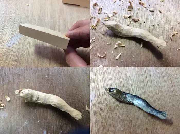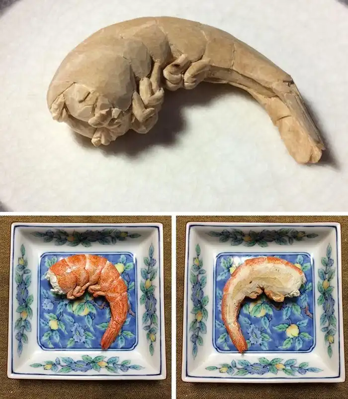 Мастер резьбы по дереву Сэйдзи Кавасаки (Seiji Kawasaki) известен тем, что создает невероятно реалистичные фигурки еды из дерева. Уделяя внимание мельчайшим деталям, и аккуратно раскрашивая свои работы, Сэйдзи добивается такого сходства, что его бутафорию запросто можно спутать с настоящей едой. Самое удивительное, что на все работы у мастера уходит 2 - 3 часа.