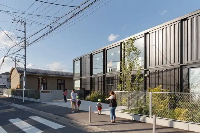 Мы уже неоднократно показывали вам архитектурные сооружения из грузовых морских контейнеров, но в большинстве случаев это были жилые дома, теперь же предлагаем взглянуть на детский сад из контейнеров. Этот необычный детский сад расположен в японском городе Сайтама. Здание было возведено в короткие сроки и конструктивно усилено, чтобы выдержать землетрясения. Контейнеры расположены таким образом, что создают небольшой внутренний дворик с крытой террасой, а комнаты для отдыха детей объединены с одним большим залом площадью 364 кв. метра.