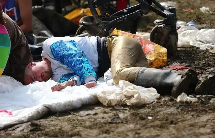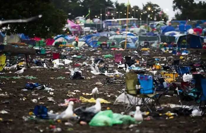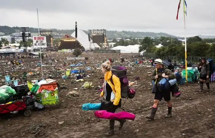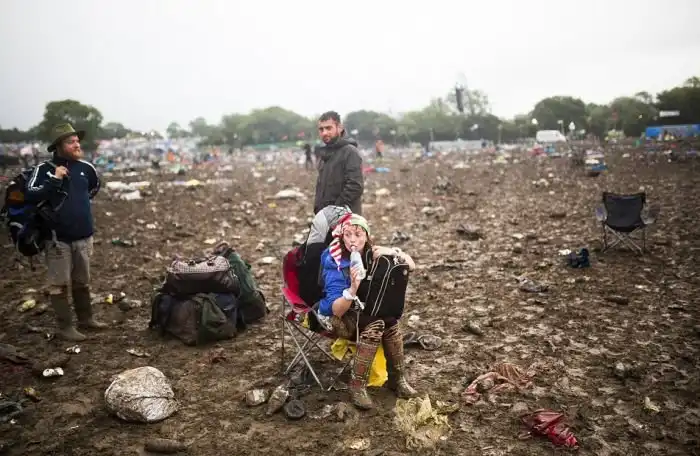В Великобритании завершился Гластонберийский фестиваль современного исполнительского искусства, далее предлагаем взглянуть, что теперь представляет собой место проведения фестиваля. 1800 уборщиков приступили к уборке территории, и, как ожидается, они соберут около 1000 тонн мусора, который потом отправится на переработку. Погодные условия осложняют убору, однако, несмотря на это, территория будет приведена в надлежащий вид в ближайшее время.