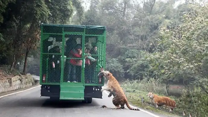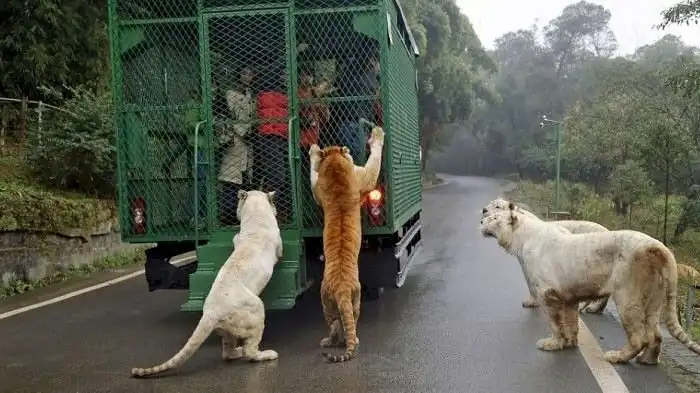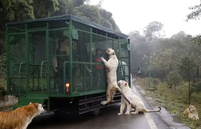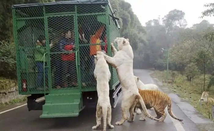 В китайском зоопарке Lehe Ledu Wildlife Zoo в клетках сидят не животные, а люди. Посетителям такой расклад очень нравится, ведь в этом случаи можно как можно ближе рассмотреть опасных хищников, находясь в полной безопасности.
