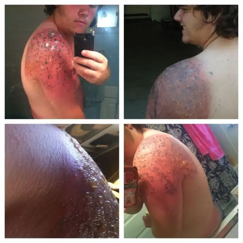 Солнцезащитный крем нужен не только тем, кто собрался в отпуск. В летнюю жару без него даже на дачу выезжать не стоит. Благодаря озоновым дырам солнце светит беспощадно, и посмотрев на этих граждан, сомнений в том, пользоваться кремом или нет, у тебя не останется.