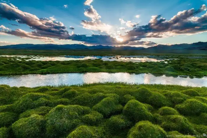 Начиналось наше путешествие у озера Толбо, но там, как и в прошлом году лил дождь. Вечером следующего дня мы стояли уже на Хар-Ус-Нуре, огромном озере с сотней видов пернатых и с миллиардами комаров. В этом сезоне какая-то напасть с ними, при том как в прошлом не видели ни одного. Мягкий спокойный закат и звон над палаткой летающей орды.