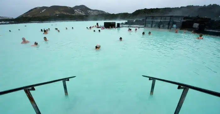 Голубая Лагуна в Исландии привлекает множество туристов: недалеко от Рейкьявика, огромные площади, возможность погреться в горячей и полезной воде при обычно прохладной температуре снаружи. Интересно, что купальни эти не природного происхождения: вода в них самая настоящая термальная, а вот комплекс вместе с «озером» является творением рук человеческих, отлично имитирующем природные ландшафты.