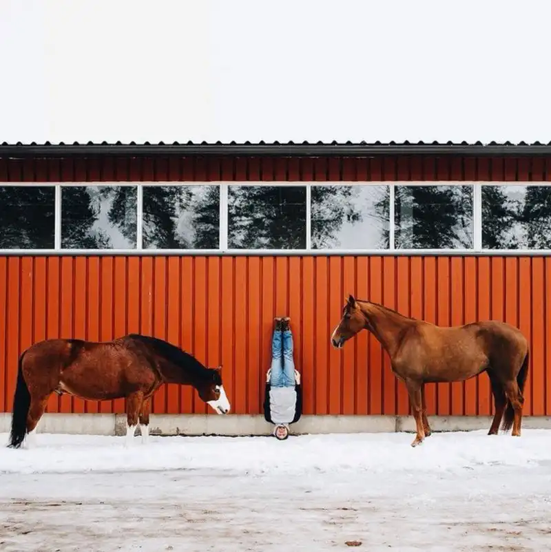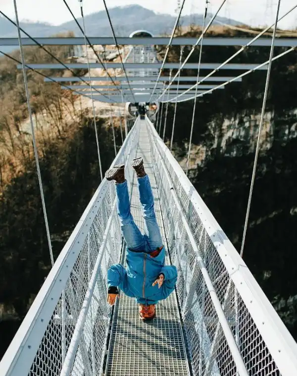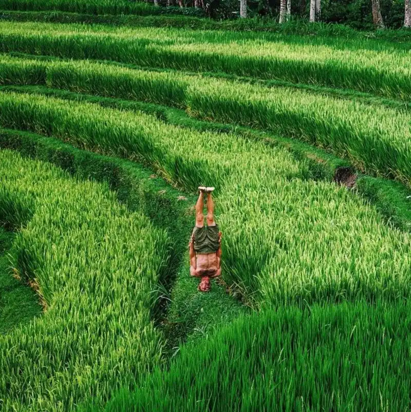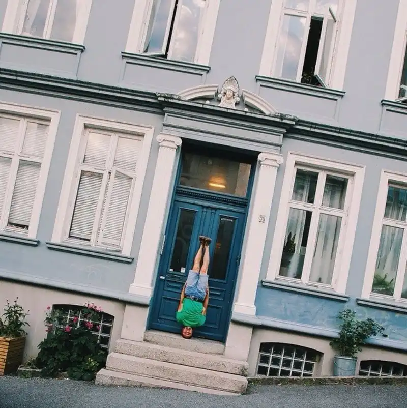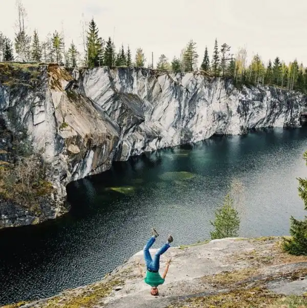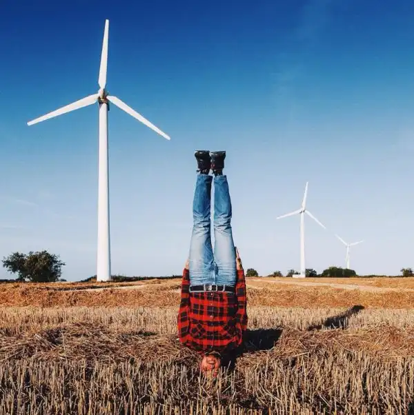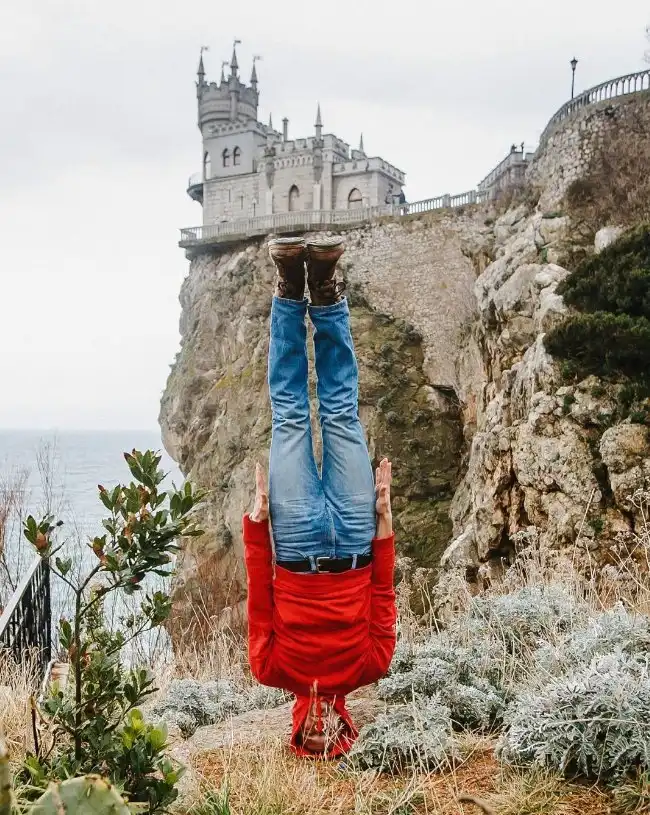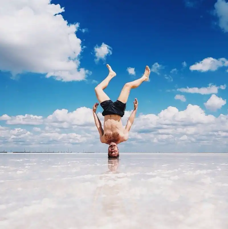 Инженер из России Антон Чарушин путешествует по разным странам мира и делает фотографии у моря, гор и ветряных электростанций стоя на голове.