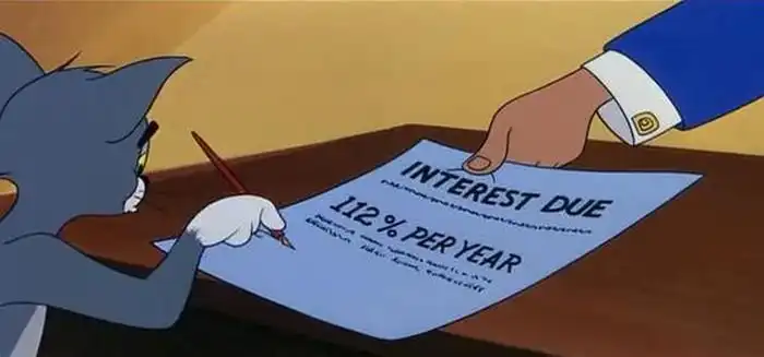 В одной из серий мультфильма «Том и Джерри», Том решил произвести впечатление на кошечку при помощи автомобиля, на который он взял кредит в банке. Далее предлагаем взглянуть, на каких условиях он брал этот кредит.