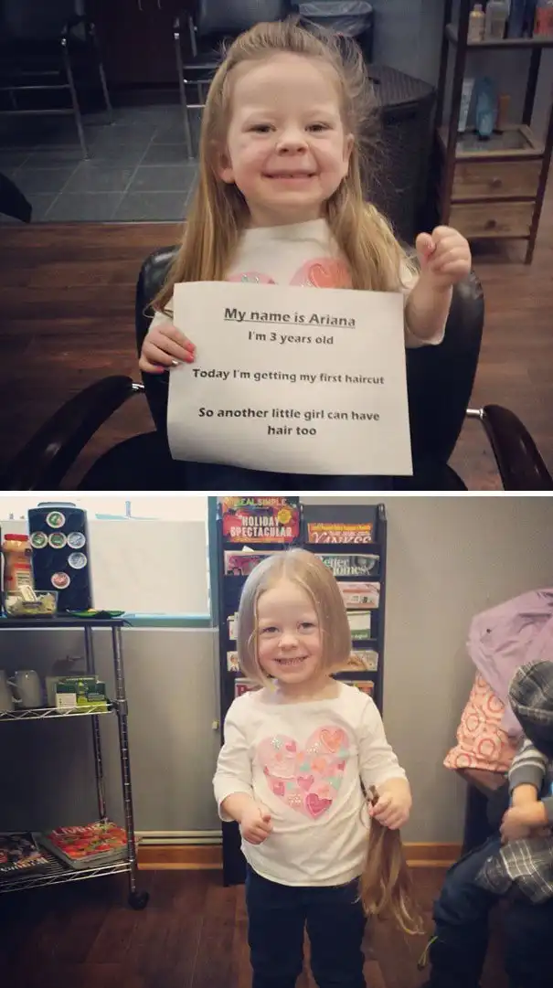 8. 3-летняя малышка увидела девочку, потерявшую волосы в результате химиотерапии, и решила поделиться с ней своими