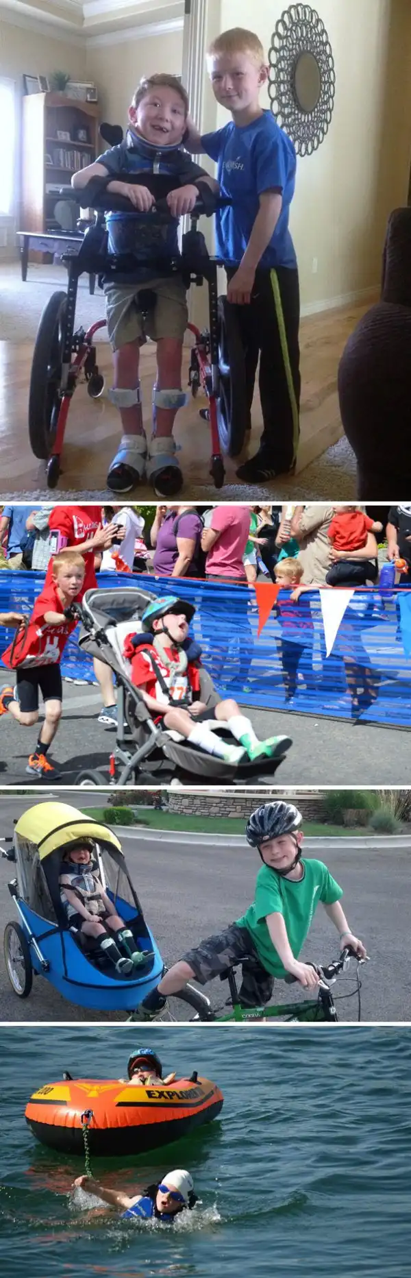 1. 8-летний Ноа проходит триатлон вместе с Лукасом, его братом с инвалидностью