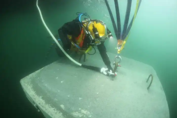 При кажущейся простоте, это довольно сложная конструкция. В марте этого года, за несколько месяцев до открытия тропы, водолазы закрепляли бетонные якоря на дне озера, которые должны были удерживать пластмассовые кубы.