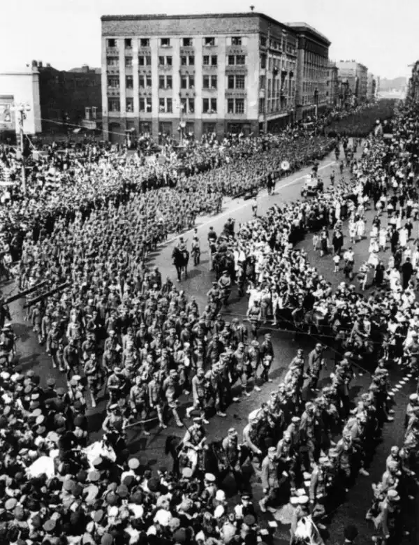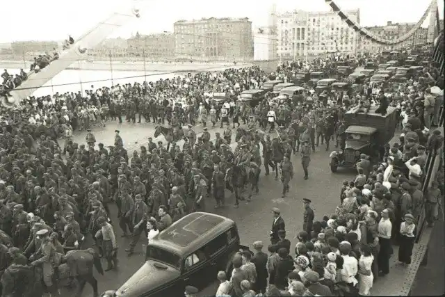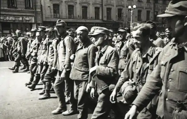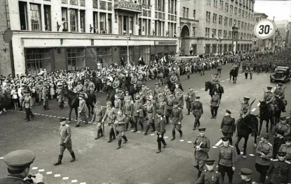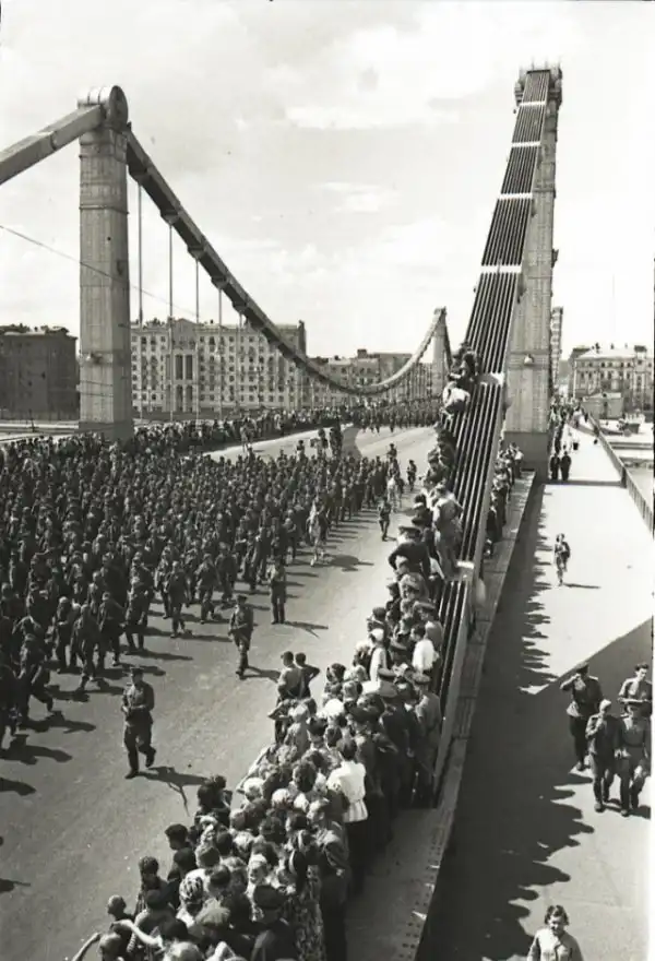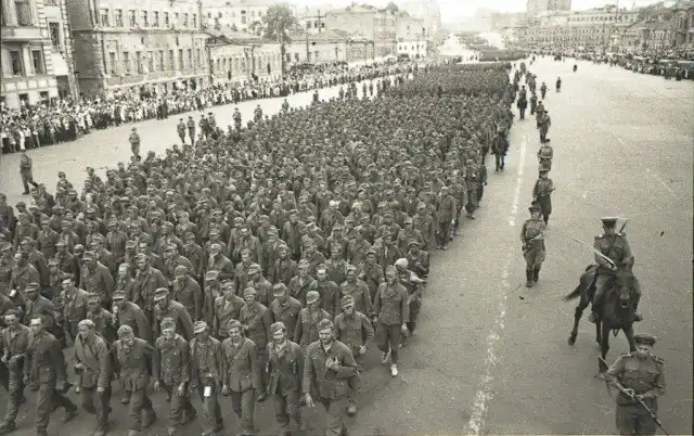 Колонны сопровождали всадники с обнаженными шашками и конвоиры с винтовками наперевес. За пленными следовали поливальные машины, символически отмывая землю от «гитлеровской нечисти». «Парад» закончился к семи часам вечера, когда все пленные разместились по вагонам и были отправлены в места заключения. Четырём пленным, отставшим от колонны, была оказана медицинская помощь.