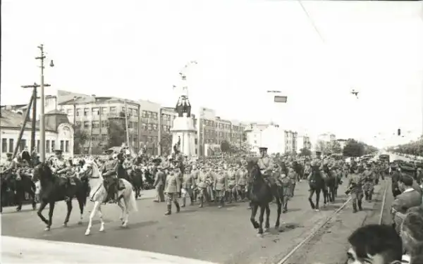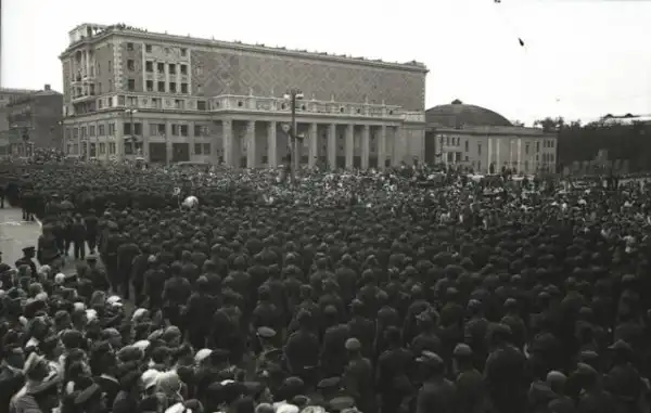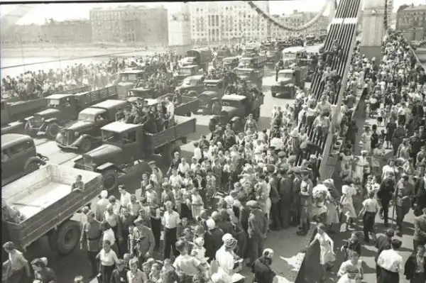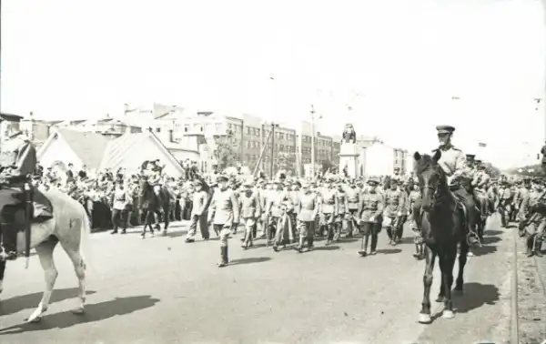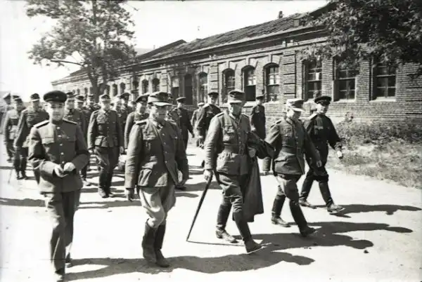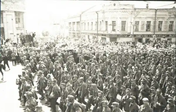 К 11 часам утра 17 июля пленных разделили на две группы и построили в соответствии со званием по 600 человек (20 человек по фронту). Руководил прохождением колонн командующий войсками МВО генерал-полковник П. А. Артемьев.