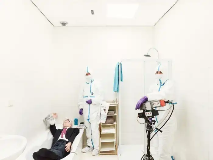Для практических занятий в полицейской академии Апелдорна выстроен дом с несколькими комнатами. Актер воспроизводит действия преступника на кухне — костюм с датчиками движения позволяет посекундно восстановить картину произошедшего.