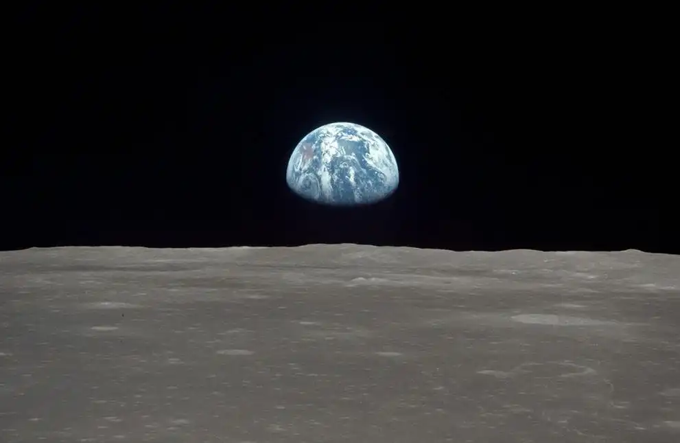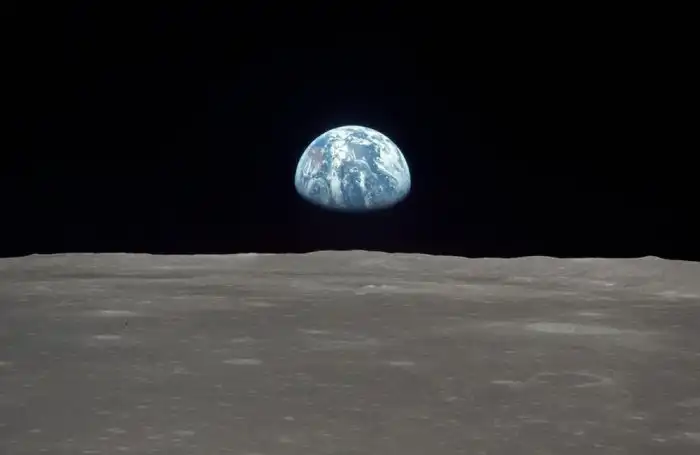 Вид с "Аполлона-11". Земля поднимается над лунным горизонтом