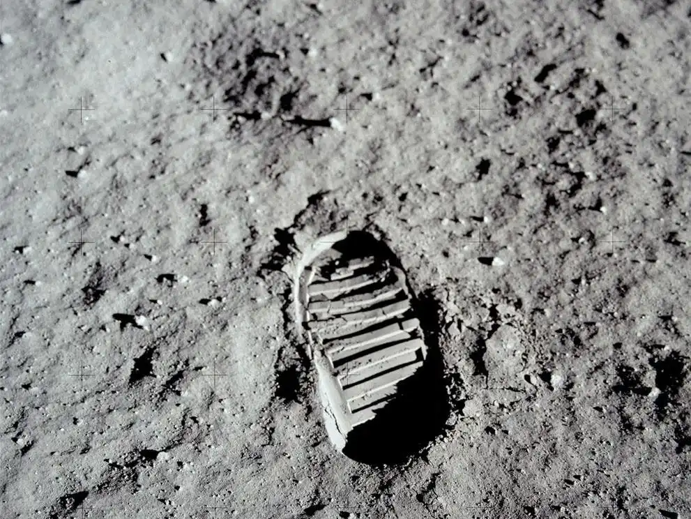 Отпечаток ноги Базза Олдрина на лунном грунте