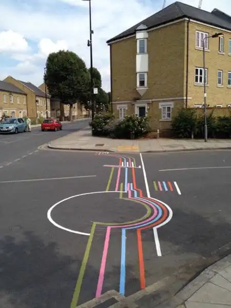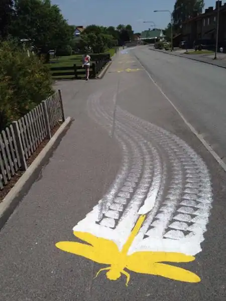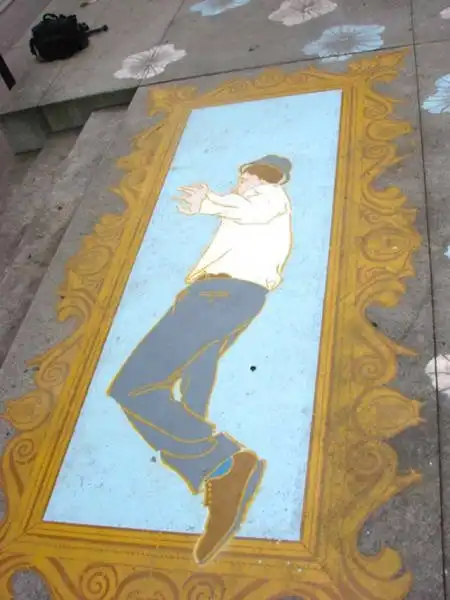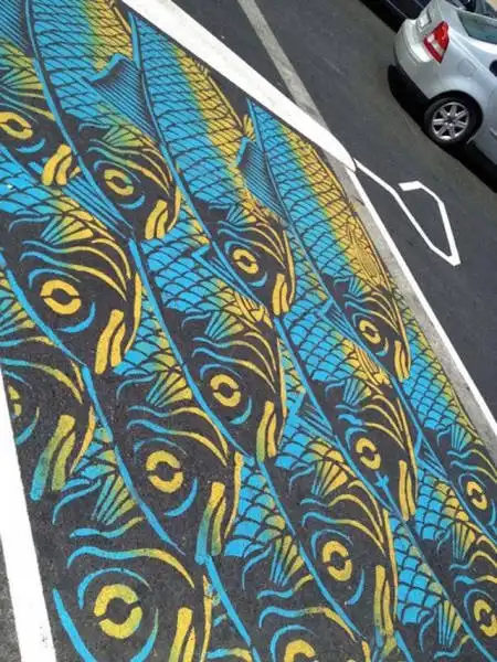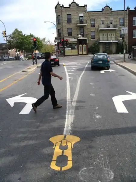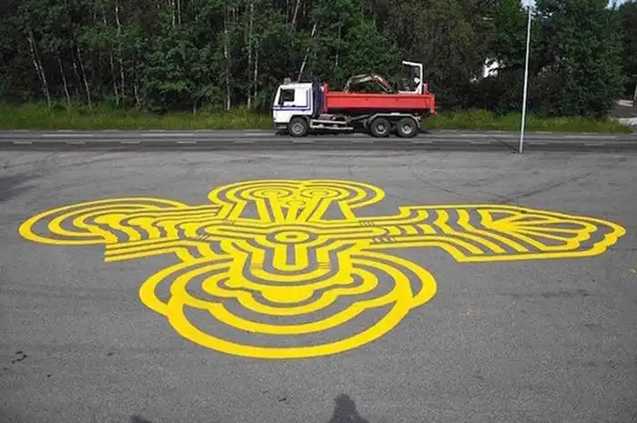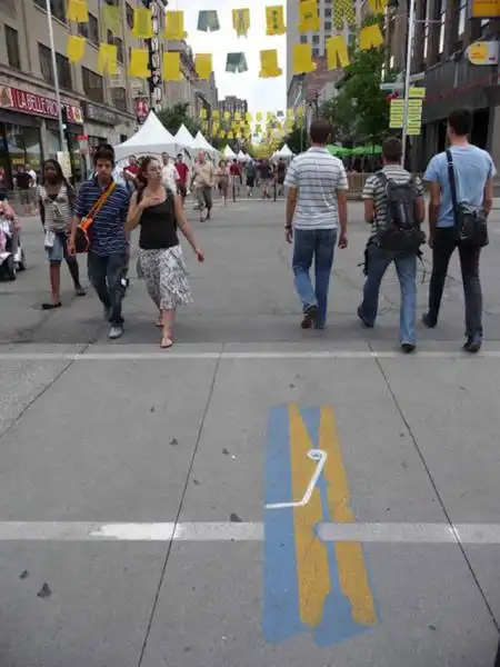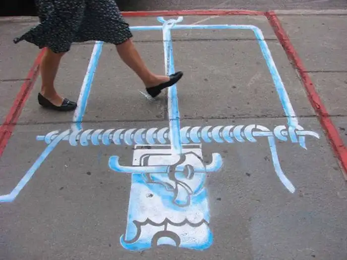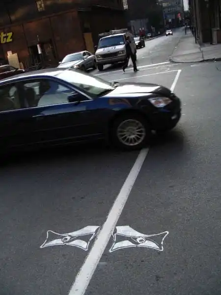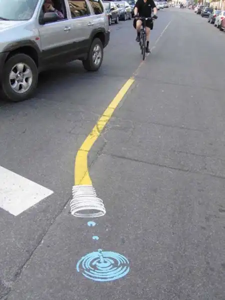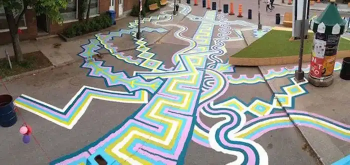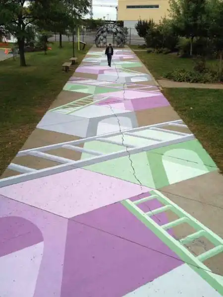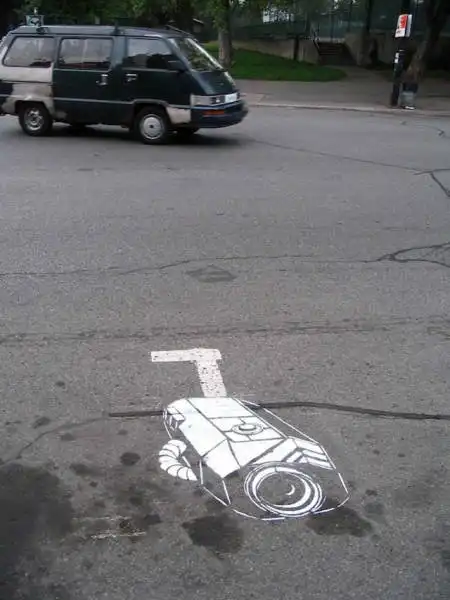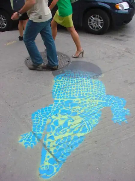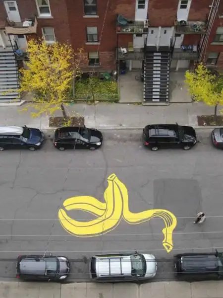 Канадский художник Питер Гибсон (Peter Gibson) из Монреаля привык рисовать не на стенах зданий, а на асфальте и, скажем честно, он в этом прекрасно преуспел. Свои первые работы Питер создал в 2001 году, в 2004 году он был арестован за вандализм, однако потом ему удалось найти общий язык с властями, позволившими ему сделать серые улицы города более яркими и жизнерадостными.