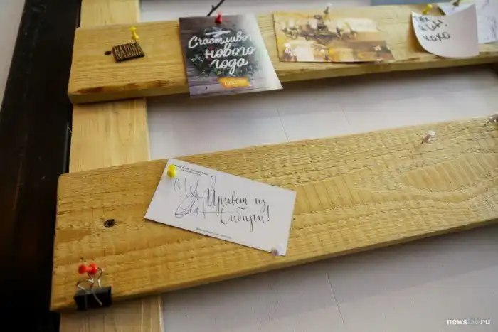 Еще одна деталь — вот эта деревянная доска. Изначально она задумывалась как «доска задач» — планировалось, что сотрудники будут оставлять на ней поручения друг для друга. Однако в этом «статусе» доска просуществовала недолго — сегодня это, скорее, стена славы.