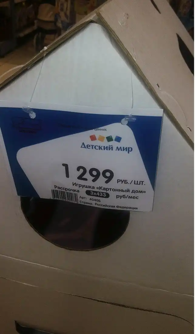 В общем просто накипело и прорвало. Ездил сегодня с семьей в ДМ купить младшей (4 года) стол и стульчик. Я уже давно привык, что детские шмотки зачастую стоят дороже взрослых, купил эту детскую мебель за 1900. Понимаю, что половины этих денег не стоит, но хрен с ними, пусть подавятся. Но то, что я увидел дальше привело меня в состояние грогги. Я даже писать не буду за кого держат нас и наших детей владельцы ДМ. Это детский, бл*дь, домик!!! Все на фото.