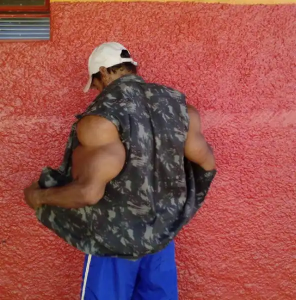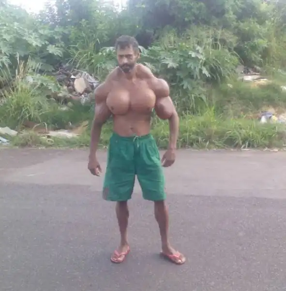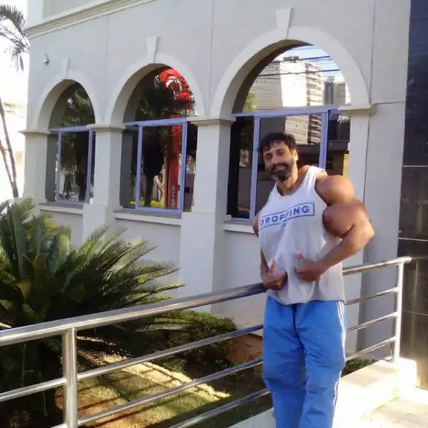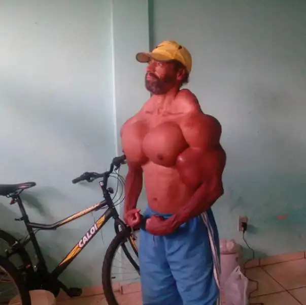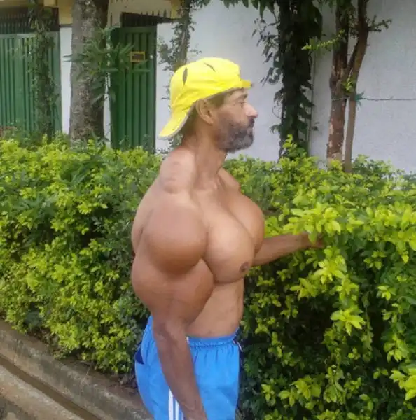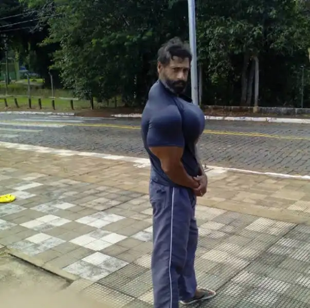 Этого уже немолодого мужчину зовут Валдир и он является синтоловым качком. Валдир не мог добиться желаемых результатов с помощью тренировок и диеты, а потому решился на крайние меры. Теперь мужчина полностью доволен своим внешним видом, хотя большинство окружающих впадают в ступор, когда видят перед собой нечто подобное.