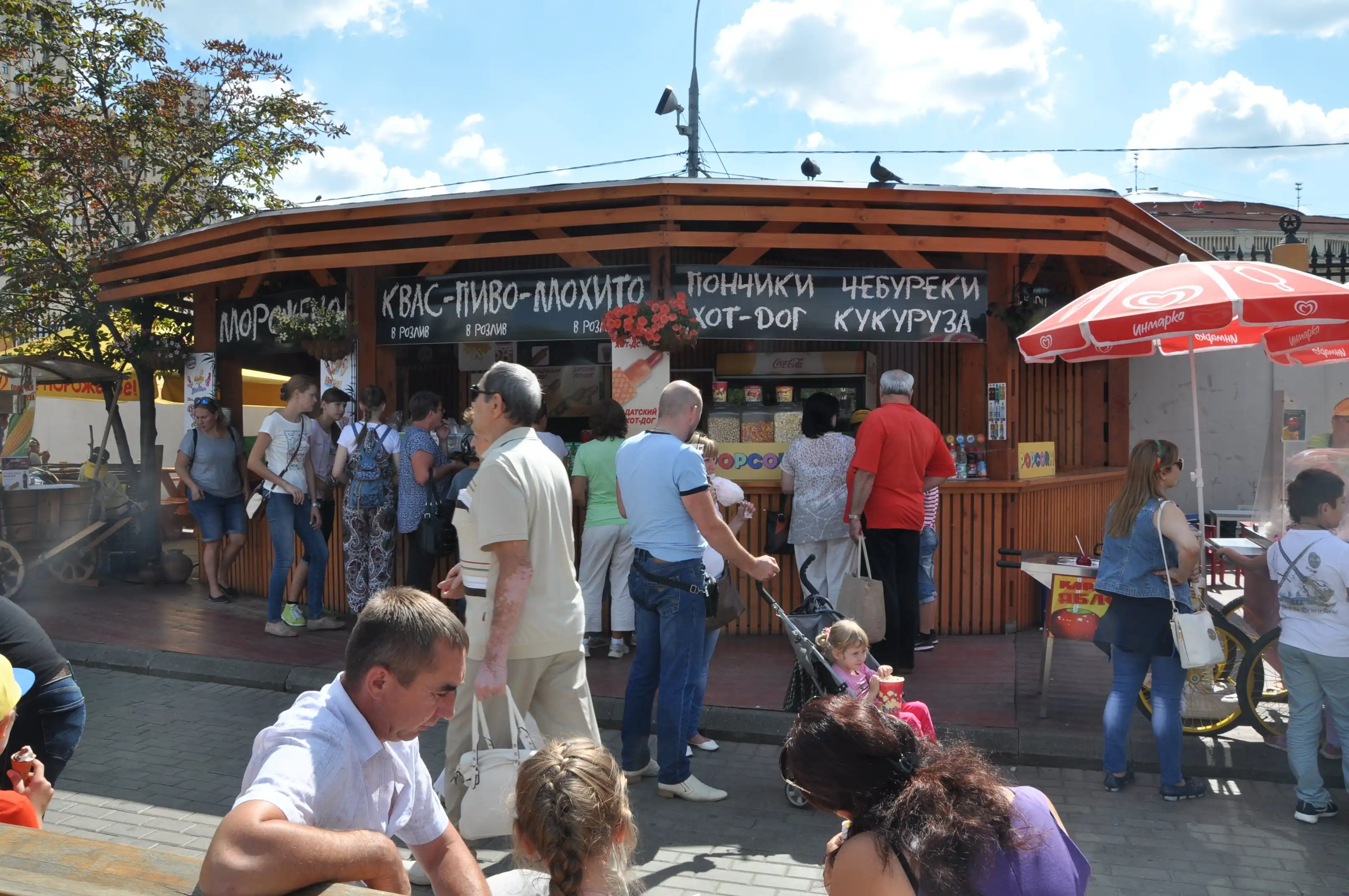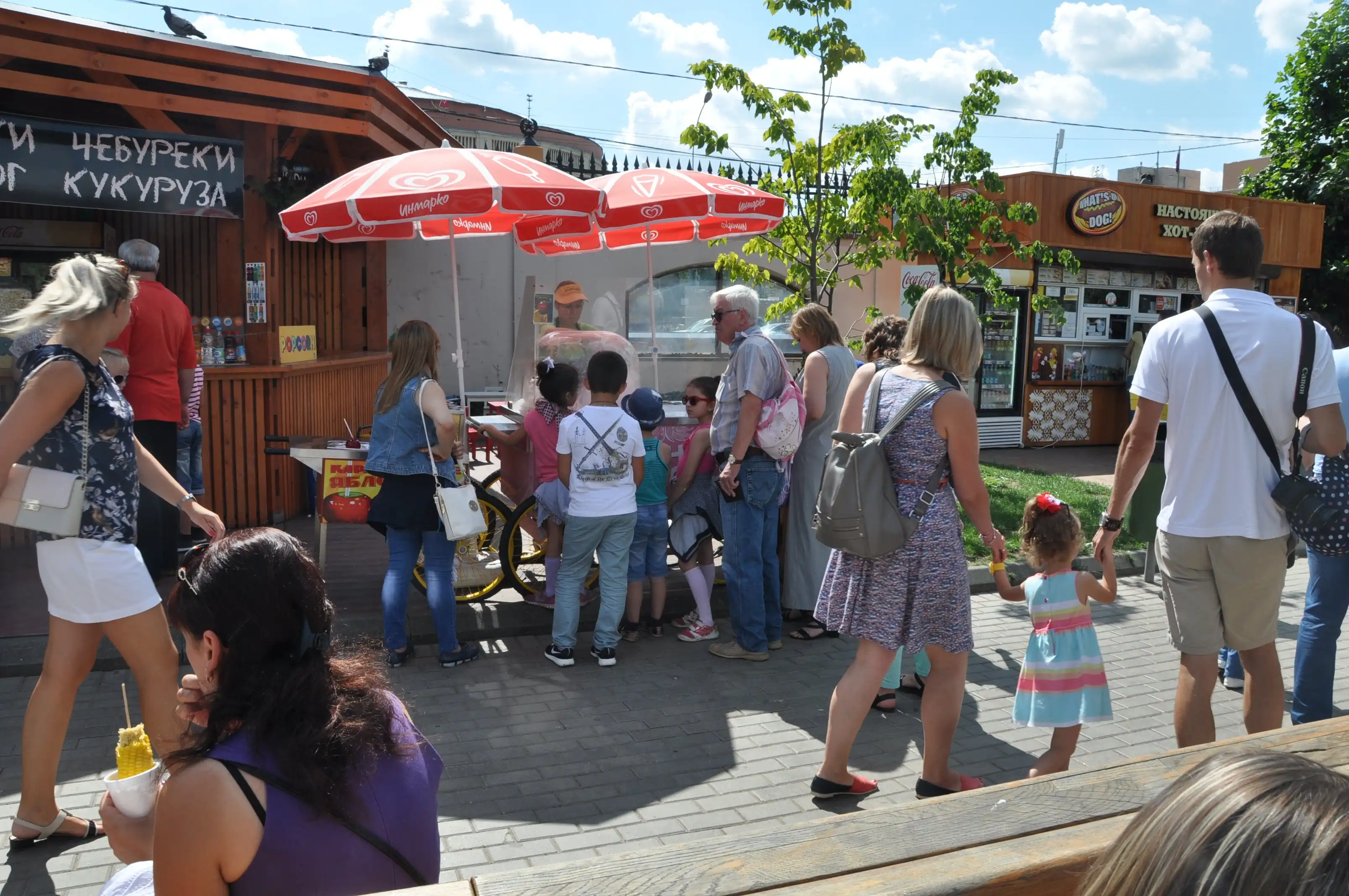 Очень много всяких кафешек и точек, где можно купить что попить и поесть – хот-доги, варёную кукурузу, сахарную вату…