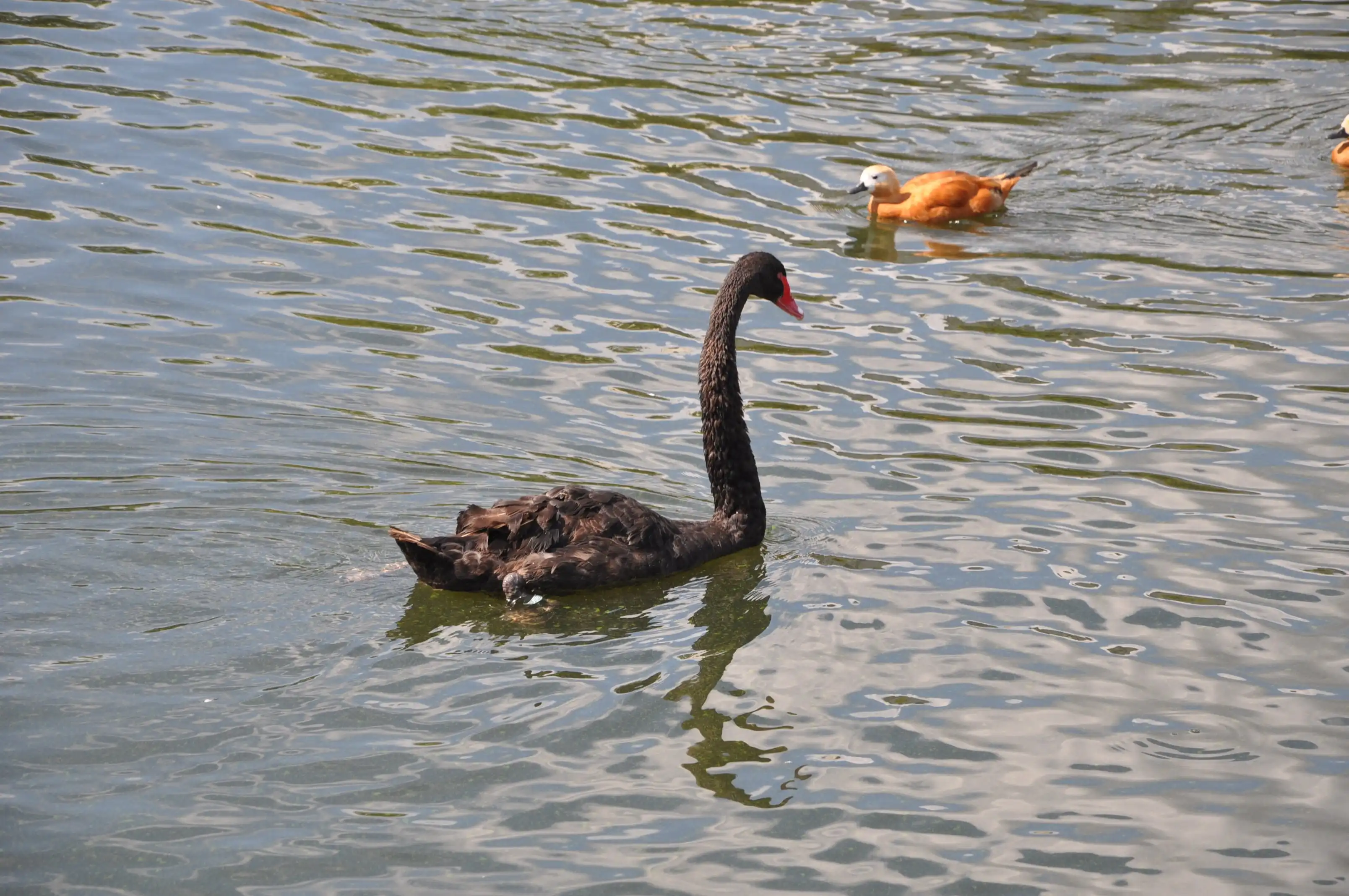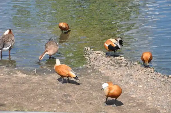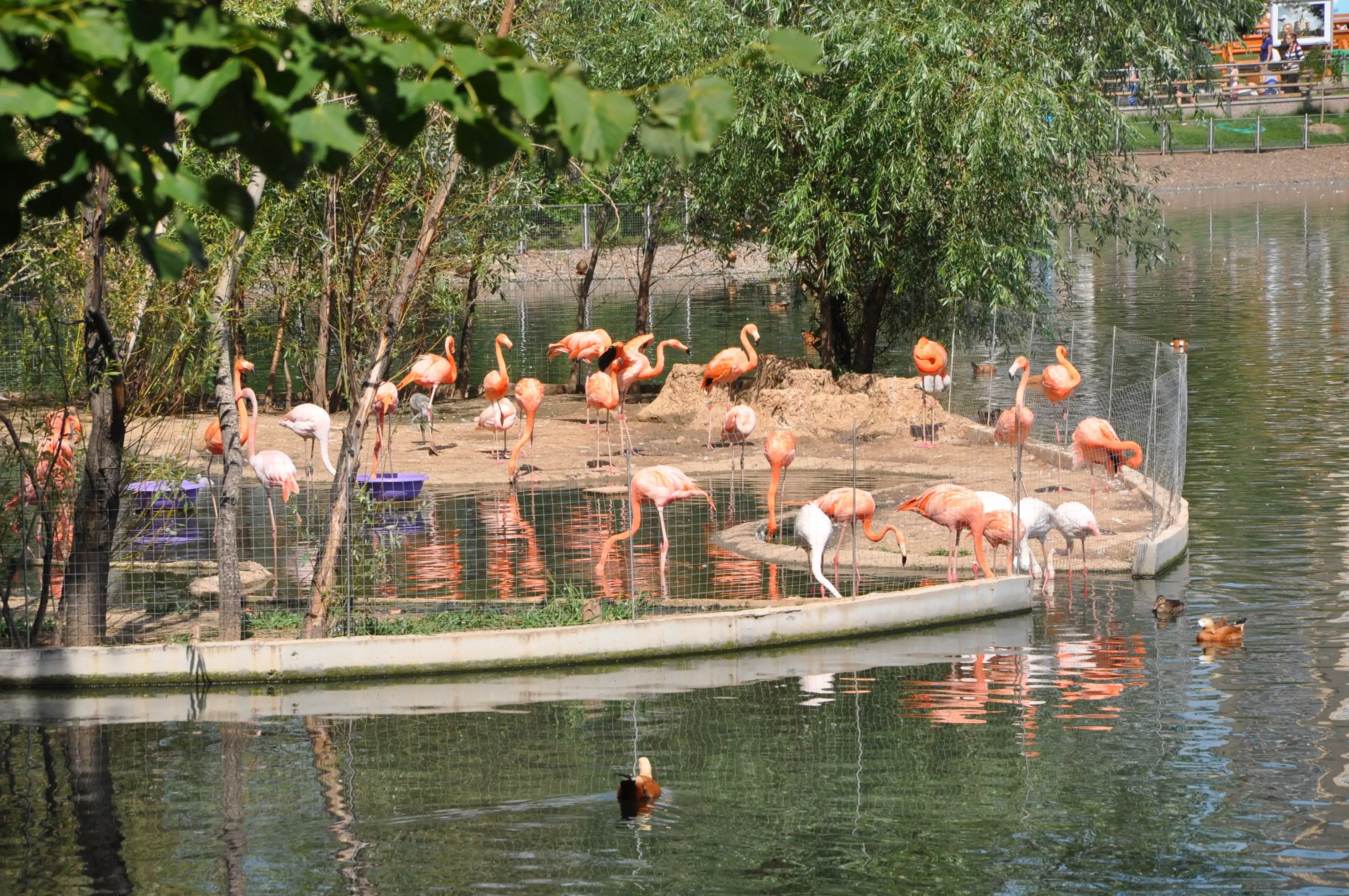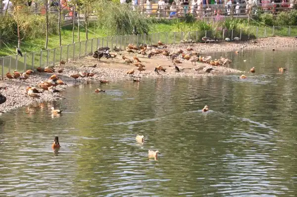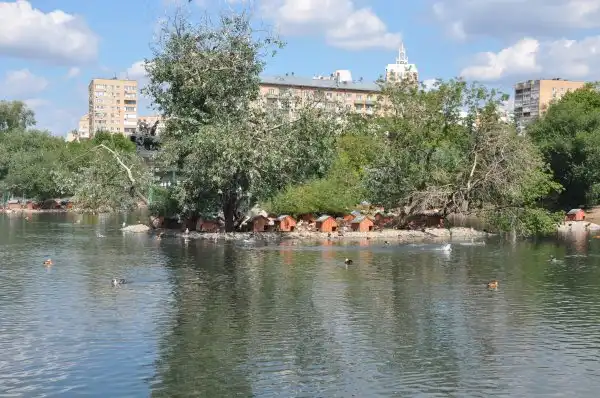 Сразу напротив входа – большой пруд с утками и лебедями. Для них на островах устроены домики.