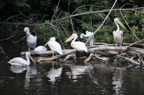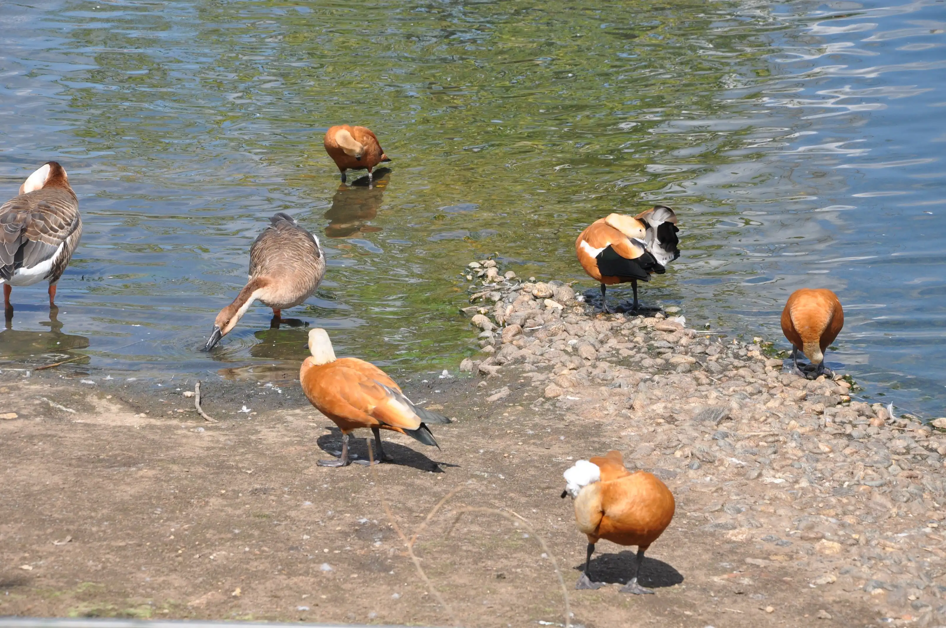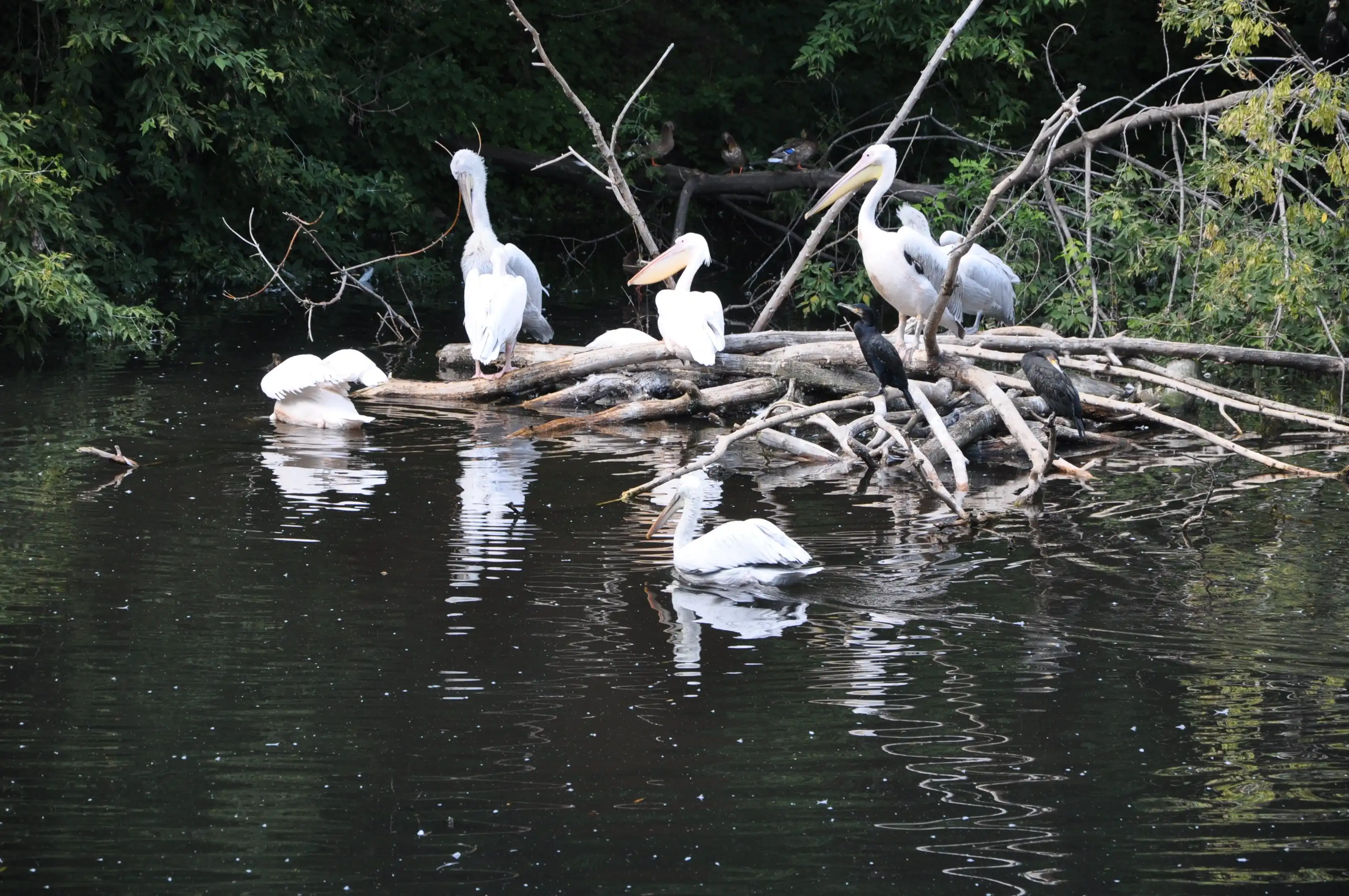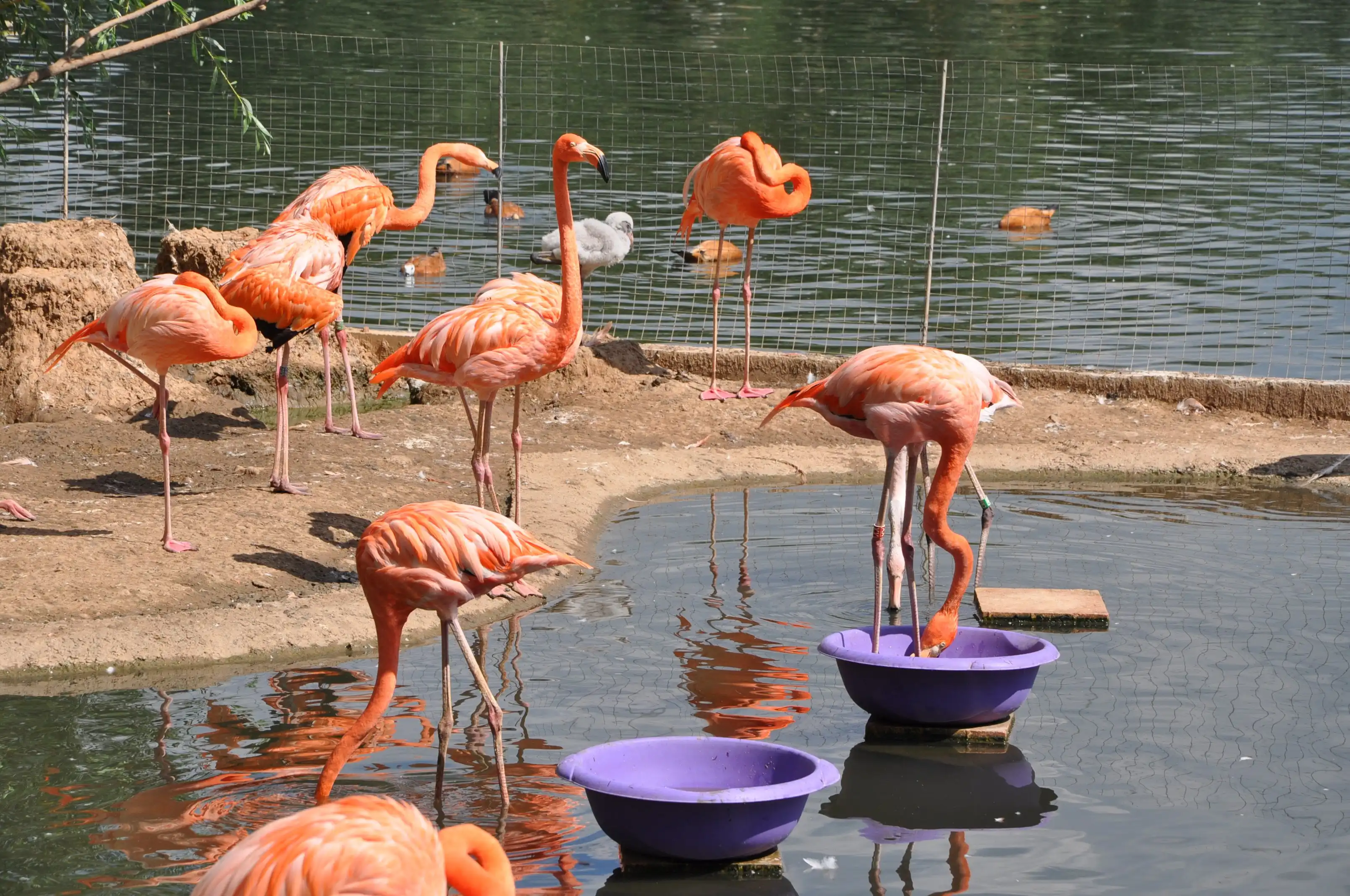 Сразу напротив входа – большой пруд с утками и лебедями. Для них на островах устроены домики.