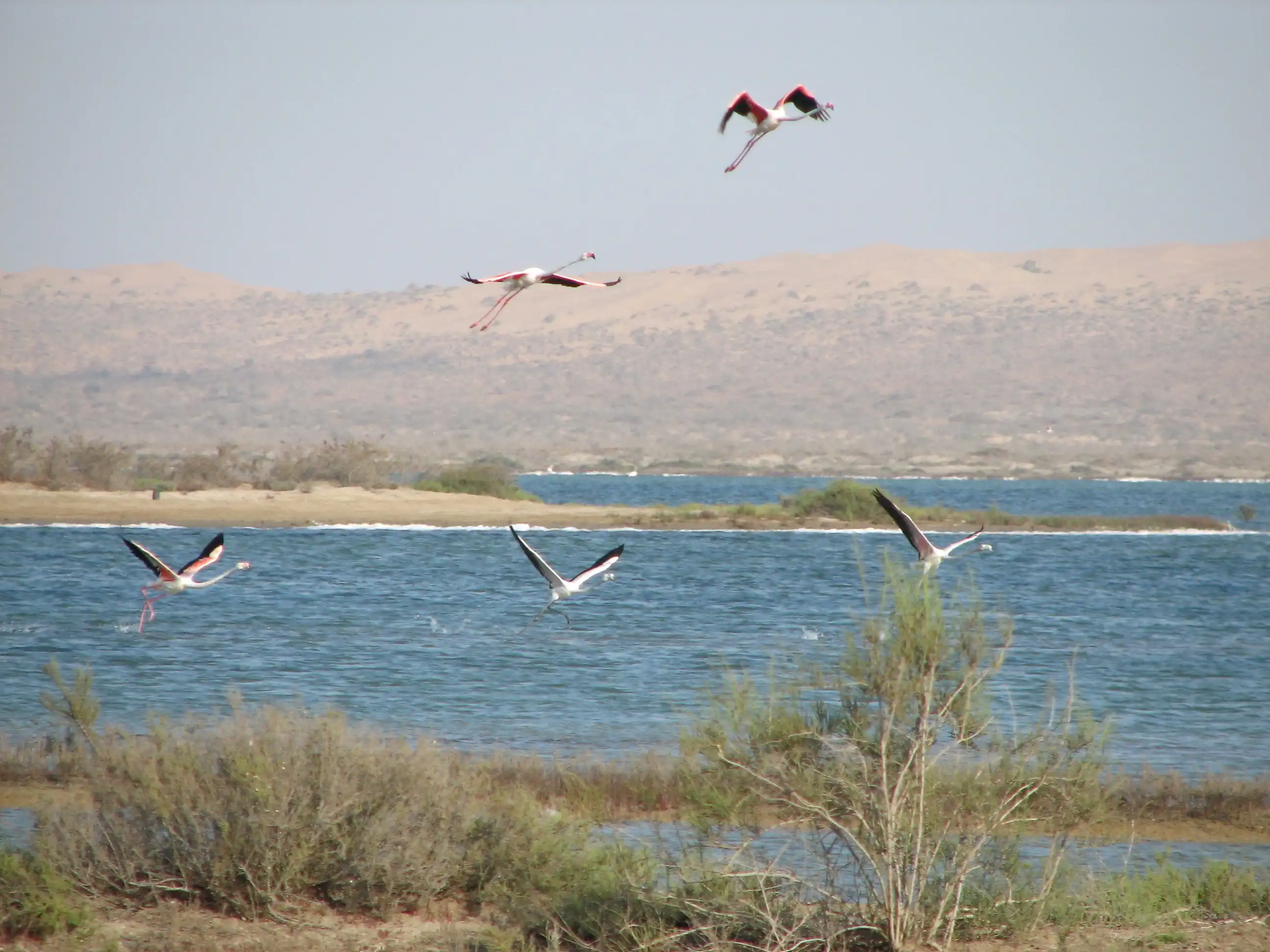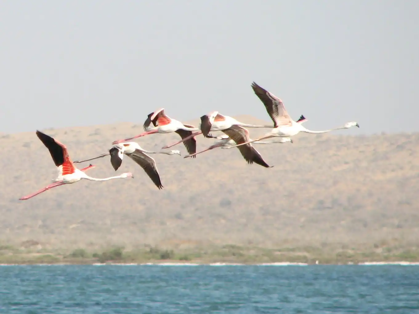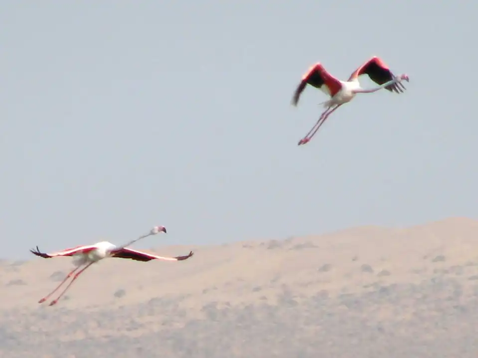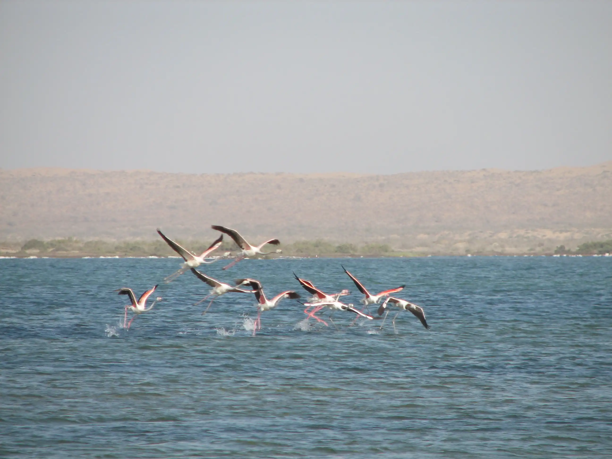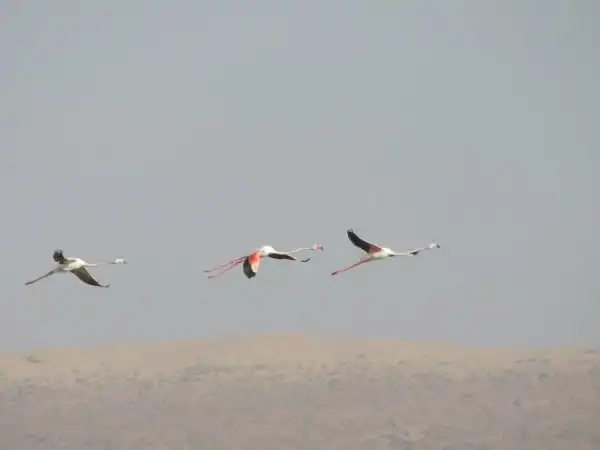 А этих розовых фламинго я снимал в Туркменистане… посмотрите, как они взлетают – прямо бегут по воде…