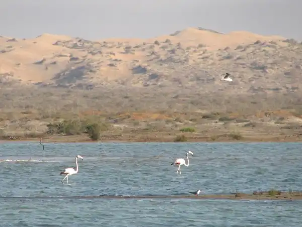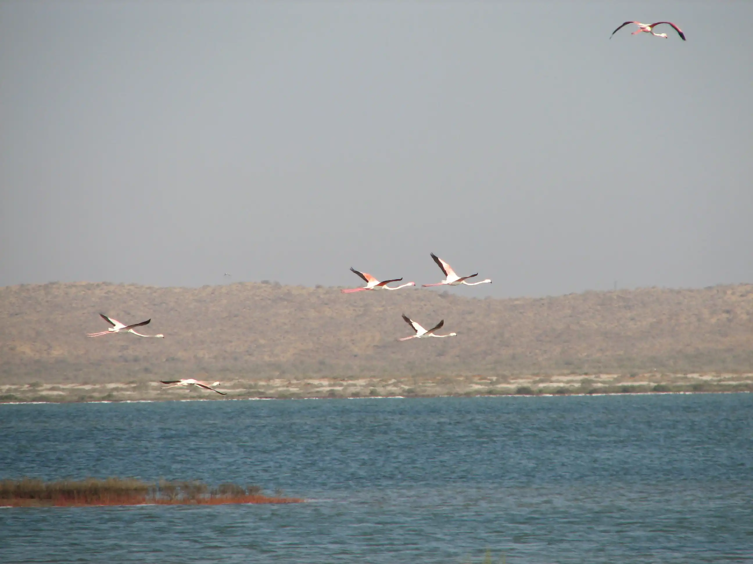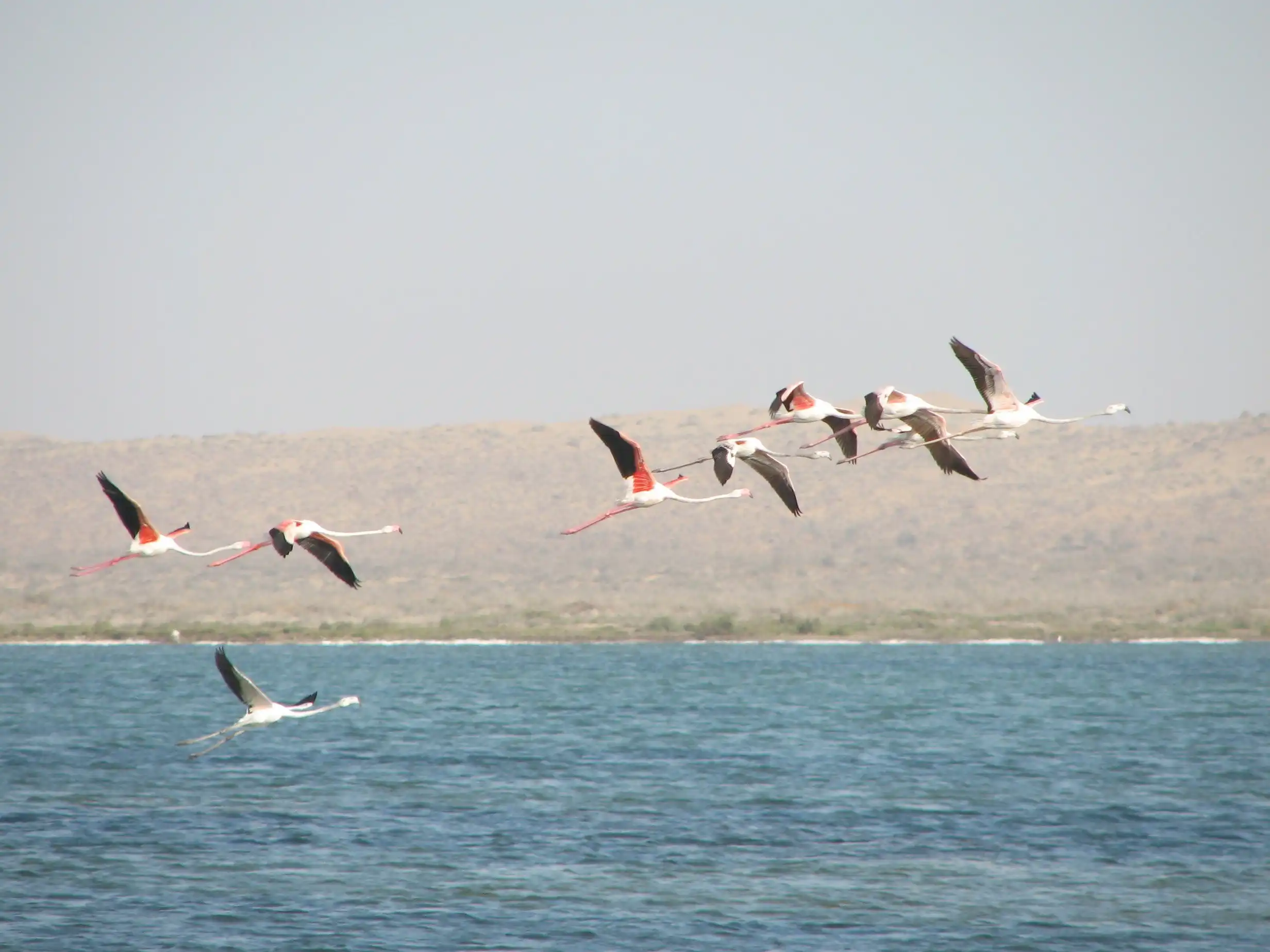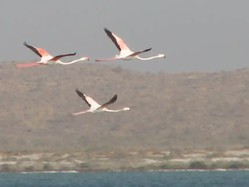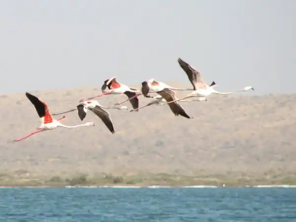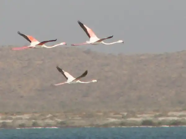 А этих розовых фламинго я снимал в Туркменистане… посмотрите, как они взлетают – прямо бегут по воде…