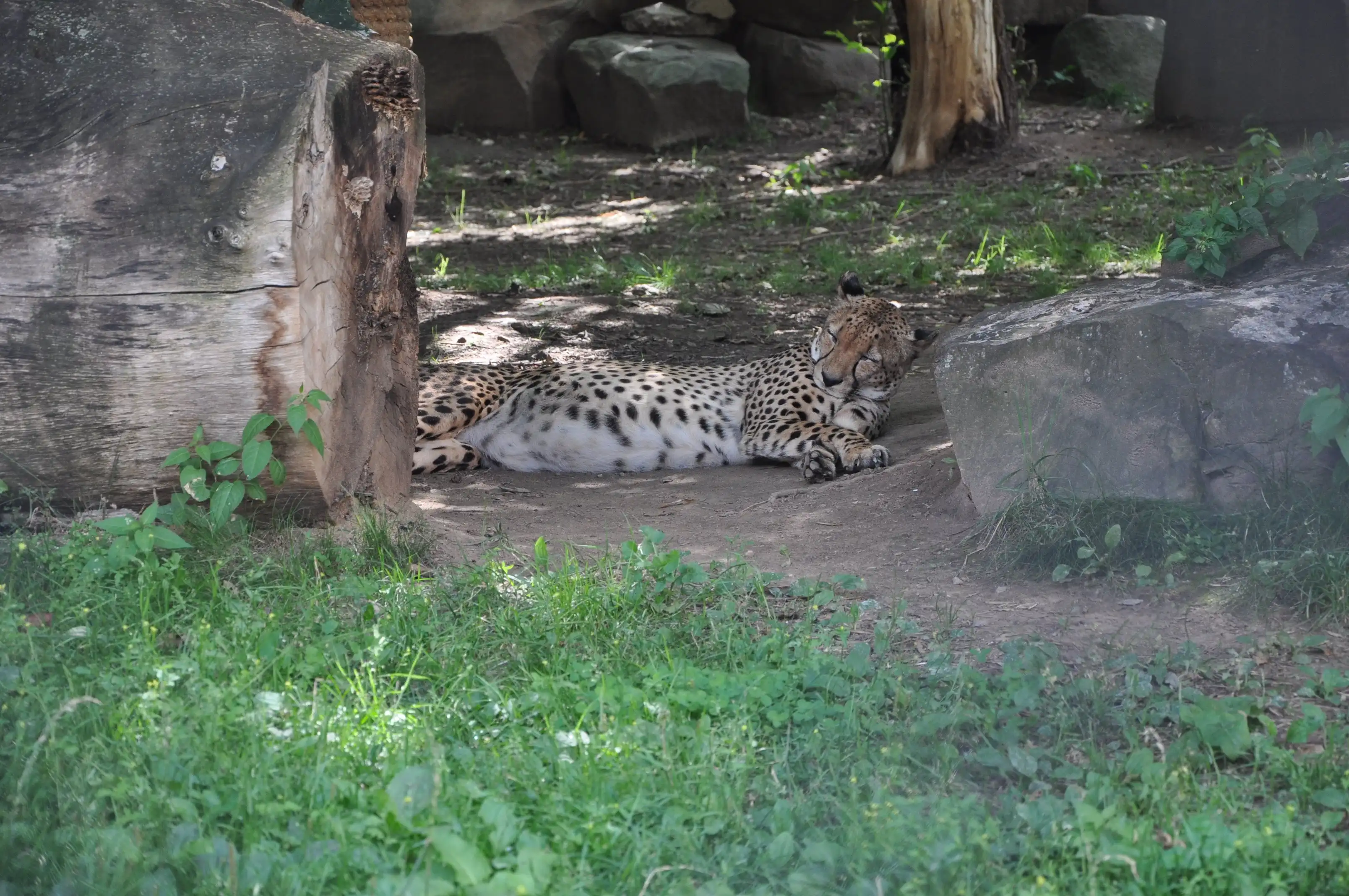Погода стояла жаркая, и многие звери попрятались в свои домики. Так, не удалось увидеть большинство кошачьих… кроме гепарда, но оцените качество вольеров…