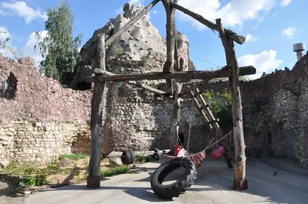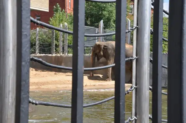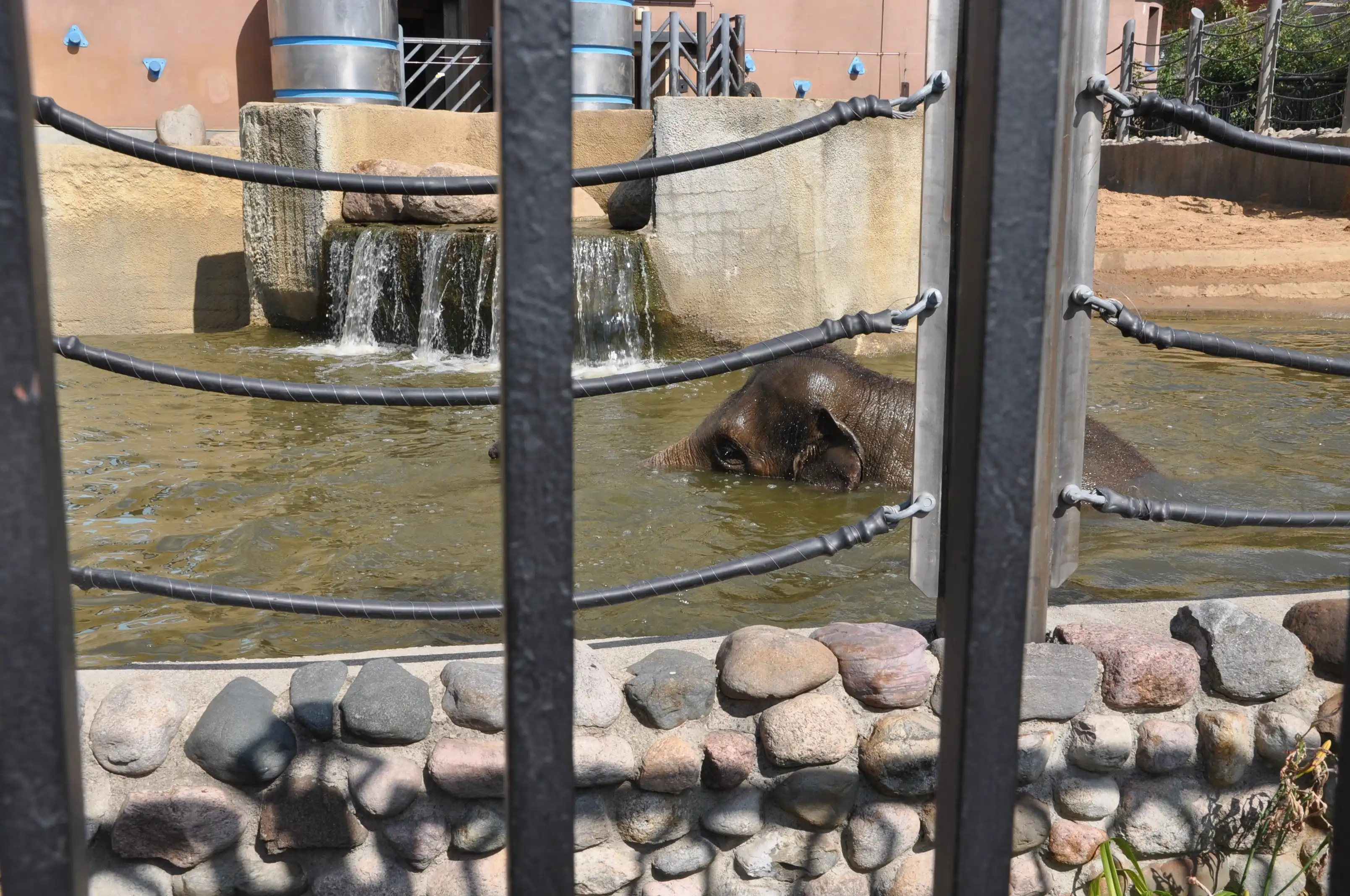 А это – огромный слонятник. Там есть бассейн, где слоны купаются, а потом обсыпают себя песком… Снимать трудно, так как вольер сильно укреплён…