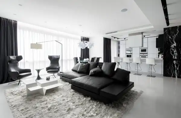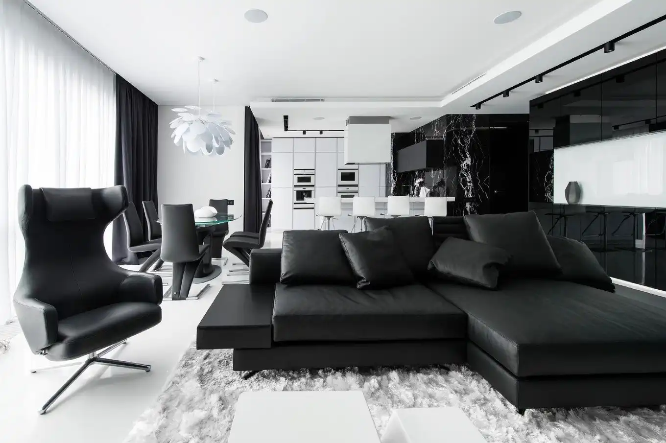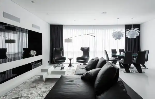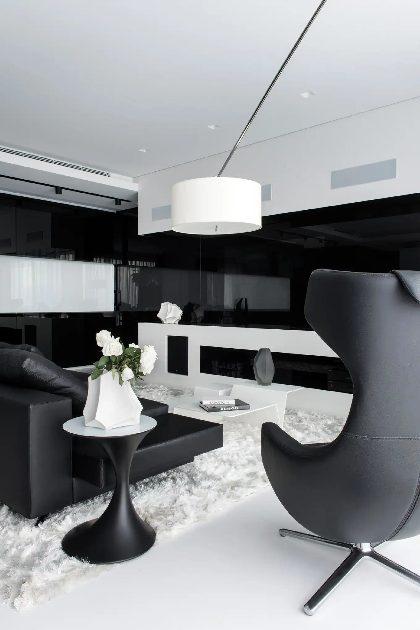 Этот чёрно-белый интерьер квартиры в Москве, разработанный студией Geometrix Design, является воплощением минимализма и графики. Чёткие линии, игра отражений и преломлений, контраст материалов — интерьер меняется, стоит лишь изменить точку обзора.