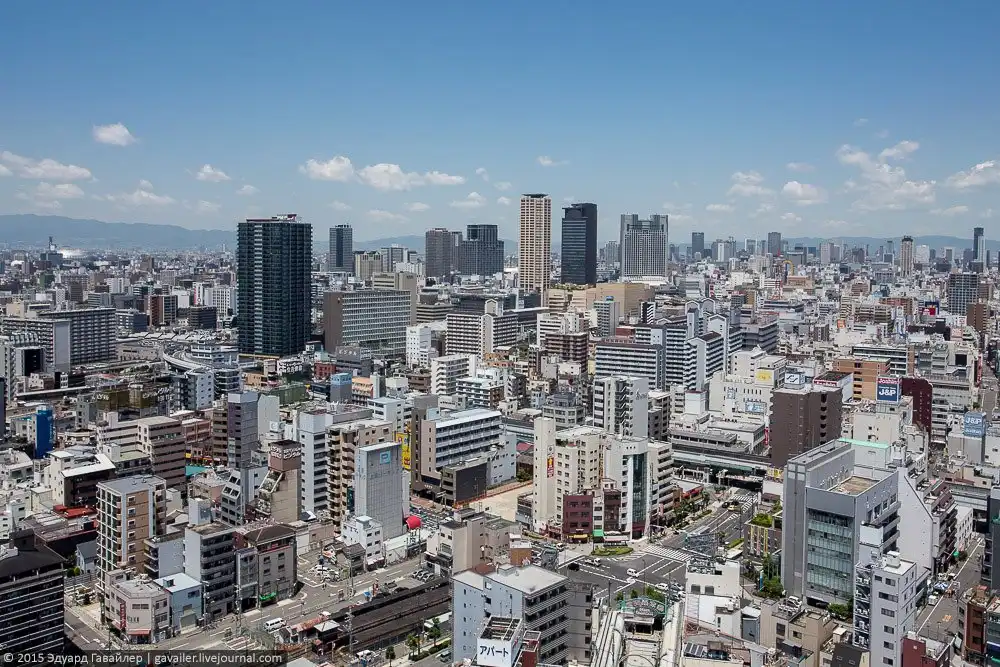 Еще один выдающийся по своим размерам город – Осака. Он третий по населению в Японии. Город настолько большой, что лучший способ его осмотреть за один день – это подняться повыше. Я нашел 3 высоты: пятиэтажный самурайский замок Осака (Osaka Castle), 103-метровая «башня в небо» Цутэнкаку (Tsutenkaku) и 173-метровое здание Умеда Скай-Билдинг (Umeda Sky Building).
