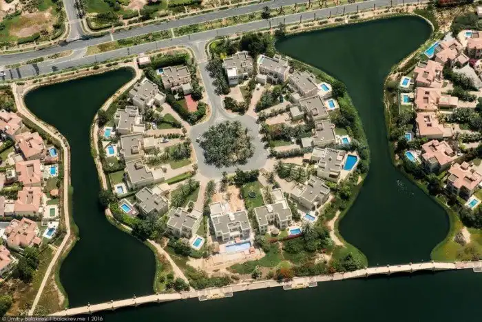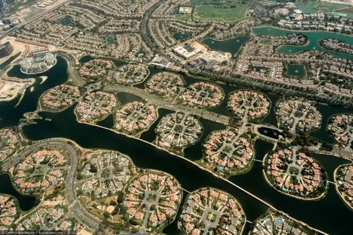 ОАЭ — страна песков, и вода здесь наверняка ассоциируется с благополучием. Чтобы жить у воды в поселке «Village» люди готовы платить за дома от 700 тысяч евро: