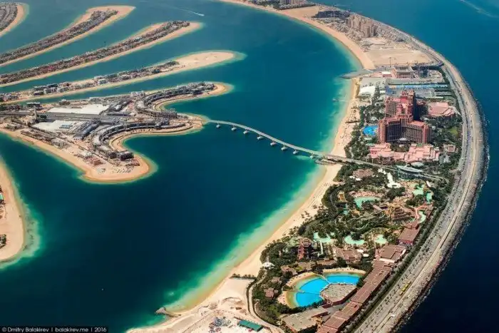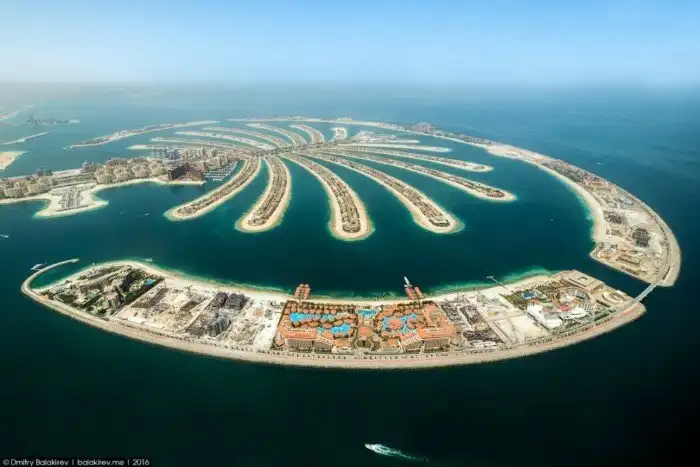 Возвращаемся к пальмовому острову, который состоит из ствола и 16 листьев. Огибает их ось в форме полумесяца. Создание искусственной суши – решение гениальное и вынужденное для арабов. Береговая линия считается самой ценной на курортах, а в Дубае острый дефицит земли на ней возник еще в 90-х. Вот и решился шейх Мохаммед на рискованный проект, из которого выросла мировая достопримечательность: