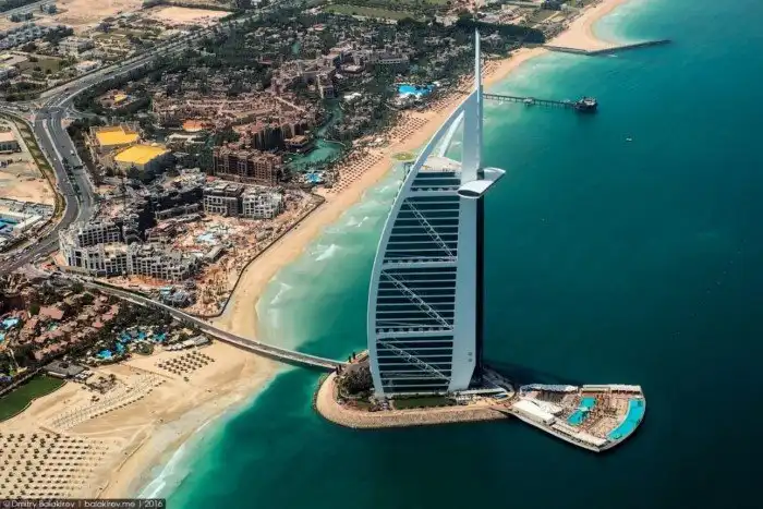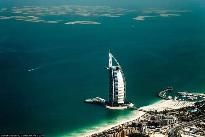 Бурдж-эль-Араб тянется к небу на 321 метр. Вид на Персидский залив с него открывается просто потрясающий:
