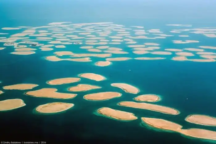 Пролетаем на архипелагом «Мир». Он находится в 4-х километрах от берега и по форме напоминает континенты Земли. Проект грандиозный, но неудачный. Плюс, «Миром» недовольны экологи. По мнению зеленых, постройки зданий на островках навредят флоре и фауне Персидского залива.