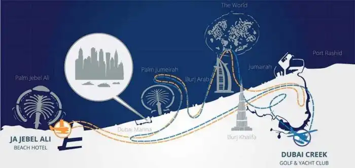 Маршрут включал все символы Дубая: район Марина, насыпной остров «Пальм Джумейра», архипелаг «Мир», роскошный отель Бурдж-эль-Араб и небоскреб Бурдж-Халифа — самый высокий в мире.