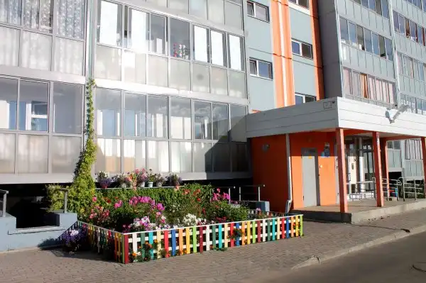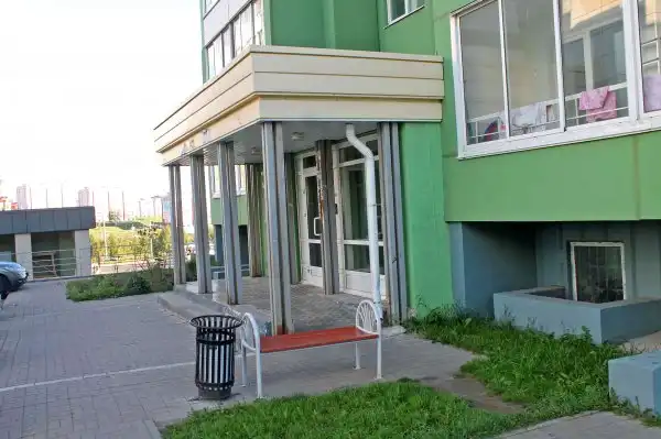 4. Подъезды чистые и широкие. Напротив каждого стоят лавки и урны