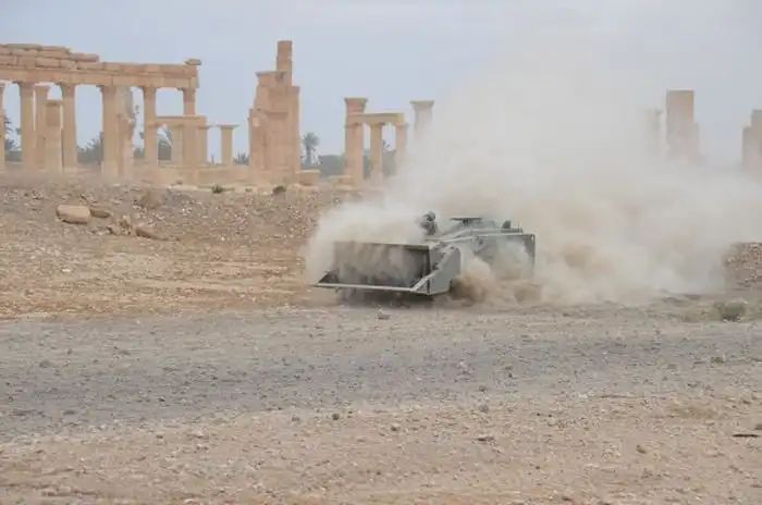 Освобожденная от боевиков ИГИЛ Пальмира по-прежнему остается буквально напичканной минами и бомбами, которые обезвреживают саперы. Недавно пресс-служба Инженерных войск опубликовала снимки работы российских саперов и саперов Международного противоминного центра.