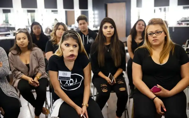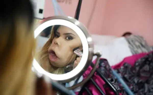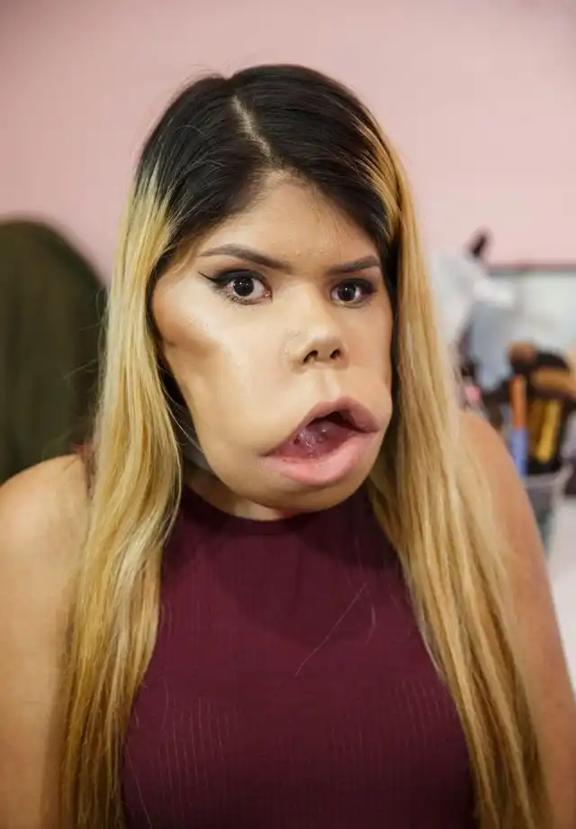 21-летняя Маримар Куойра родилась с огромной опухолью на лице. Ей пришлось перенести целую серию операций, чтобы хоть немного ее уменьшить. Как бы то ни было, девушка дышит через отверстие в шее, питается через трубку в животе и плохо слышит на правое ухо. Но это не мешает ей постигать высоты мастерства макияжа и выкладывать в YouTube обучающие ролики.