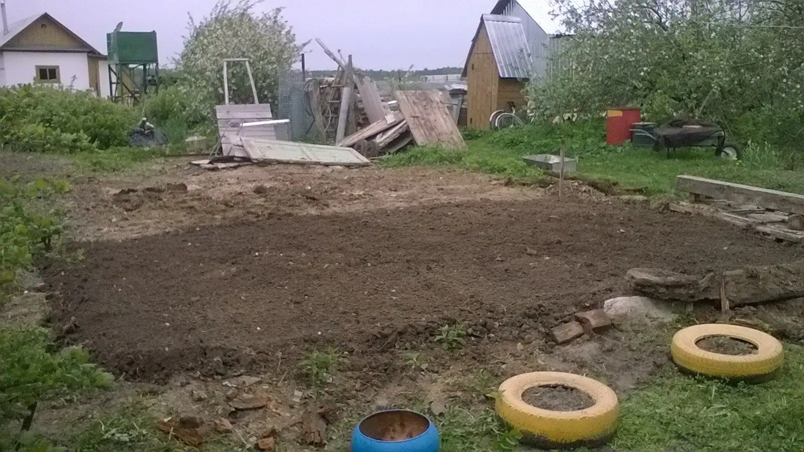 Сарай снесён. Грунт подготовлен. Задолбался выковыривать огромные каменюги - остаток от фундамента.