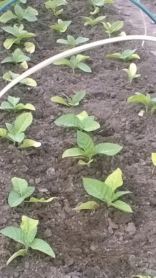 На грядке махорки видите мелкую поросль ? Ближе к зелёной палке... Это вся остальная рассада, которая не пикировалась. выбрасывать не стал, так воткнул. Пусть живёт.))