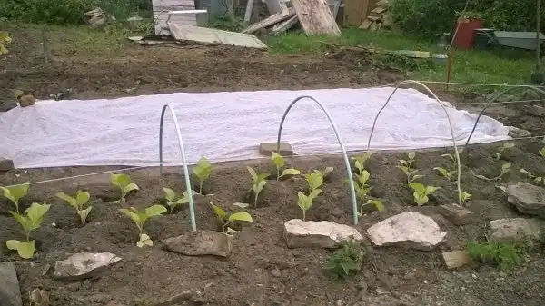 Спанбод снял с первой грядки и накрыл часть свежевысаженой рассады, дабы солнцем не обожгло.